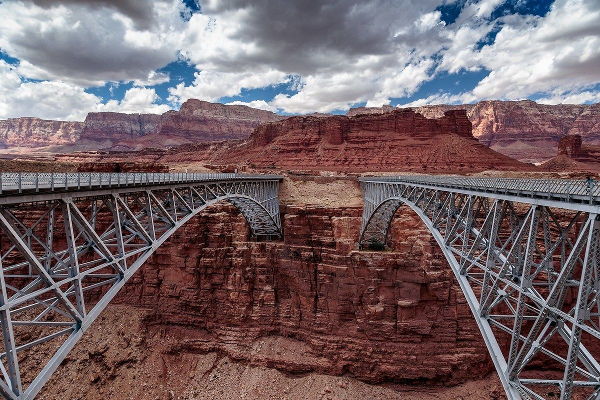 Poco oltre Page attraversiamo il Colorado sul Navajo Bridge nei pressi di Lee's Ferry, dove è d'obbligo una sosta per ammirare questo spettacolare ponte costituito da due distinte campate ad arco in acciaio costruite ad oltre 140 metri dal fondo del Marble Canyon.