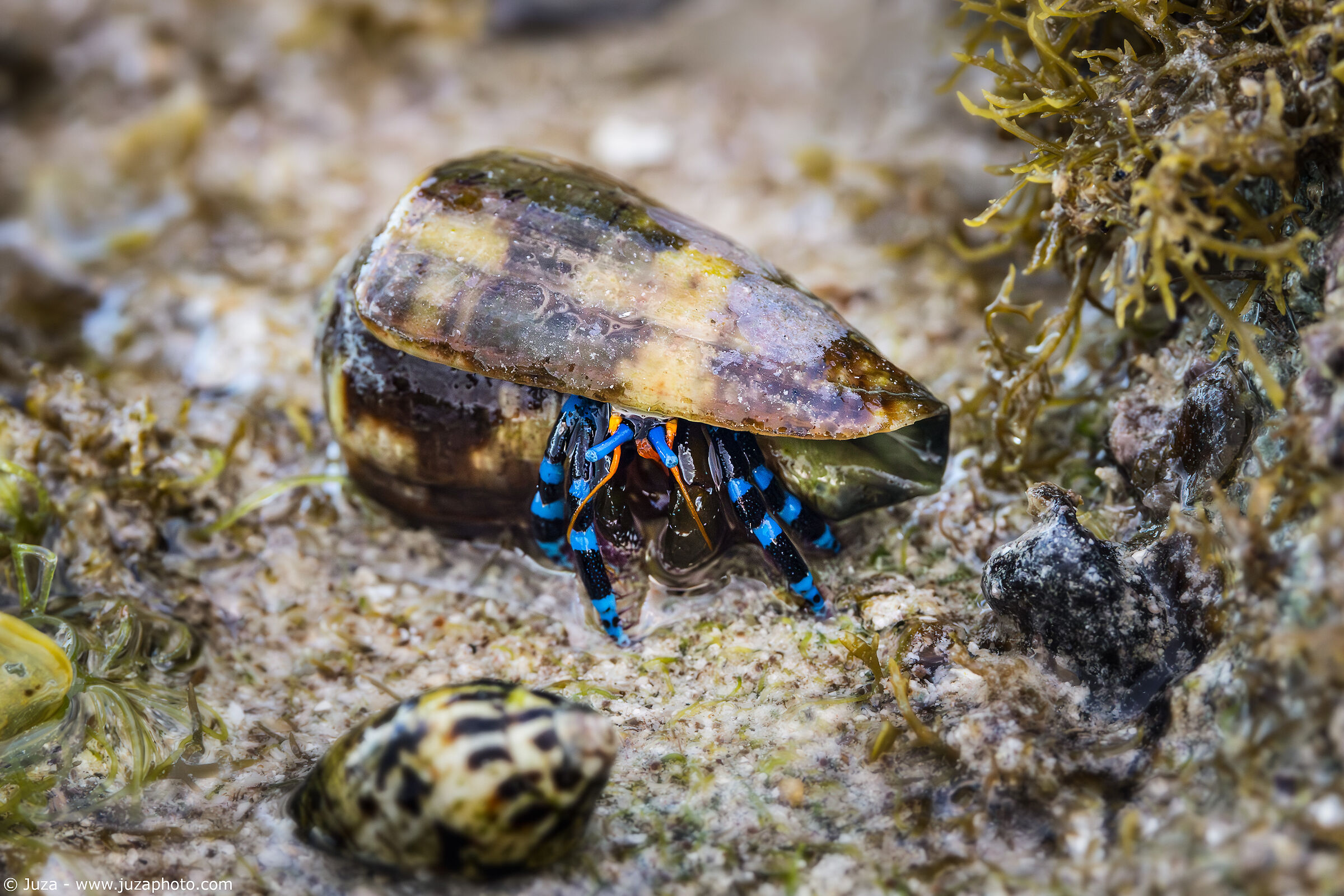 Canon EOS R7, Canon RF 100-500mm f/4.5-7.1 L IS USM a 500mm, 1/250 f/9.0, ISO 6400, mano libera. Questo minuscolo paguro misurava solo un paio di centimetri; la foto è stata resa possibile dalle capacità macro del 100-500, davvero uniche tra tutti gli zoom supertele.