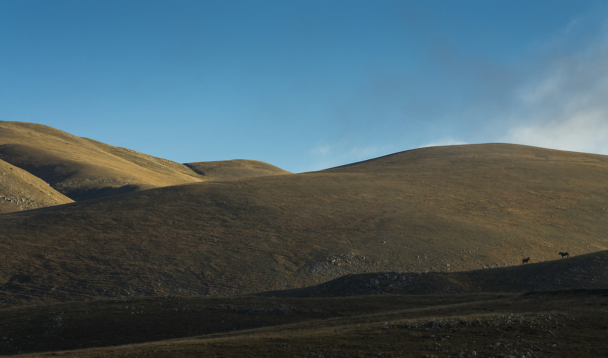 Poco prima di iniziare a scrivere questo articolo, mi accorgo di come sia estremamente complesso cercare di esprimere a parole tutte quelle sensazioni rimaste impresse nella mente. Sono percezioni che fanno fatica ad uscire, che rimangono in bilico tra il concreto e l'astratto, come se non potessero essere replicate e volessero rimanere relegate in un angolino. Proverò ad esprimerle per farvi immergere nel mio mondo, tanto vasto quanto fatto di particolari, sfumature e dettagli, gli stessi che cerco di trovare ogni volta che faccio visita nella zona del Gran Sasso e della Piana di Campo Imperatore, diventata ormai una meta fissa per rilassarmi e ritrovare me stesso.