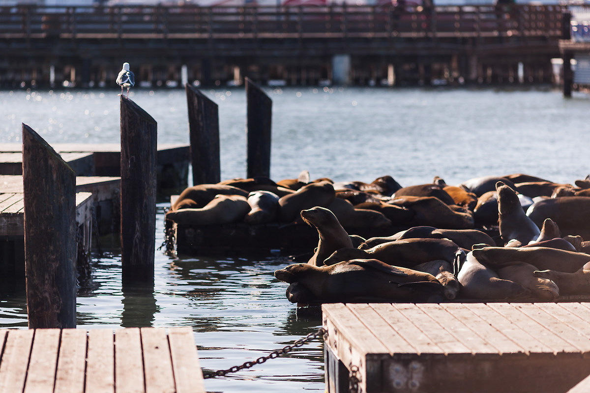 La giornata scorre velocemente mentre visitiamo il Fisherman's Wharf con il suo famoso Pier 39, il molo-centro commerciale, e i suoi leoni marini. Questi mammiferi affollano il posto perché a seguito di un terremoto, una trentina di loro, si sono avventurati su questo molo e non lo hanno più lasciato, oggi sono oltre 1500.