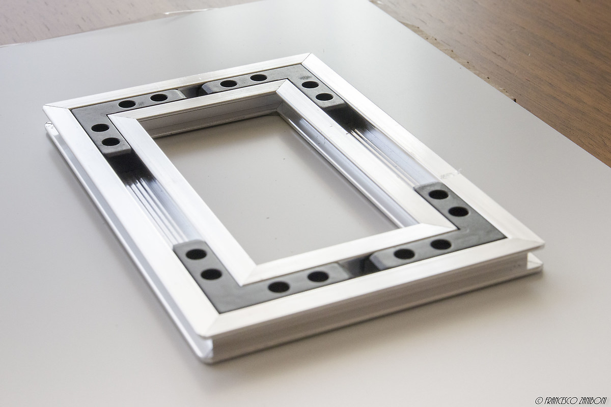 - Tramite un profilo in alluminio, montato direttamente da Saal e che permette di tenere a circa 1 cm dalla parete il quadro. Ho scelto quest'ultimo, che potete vedere nella foto seguente.