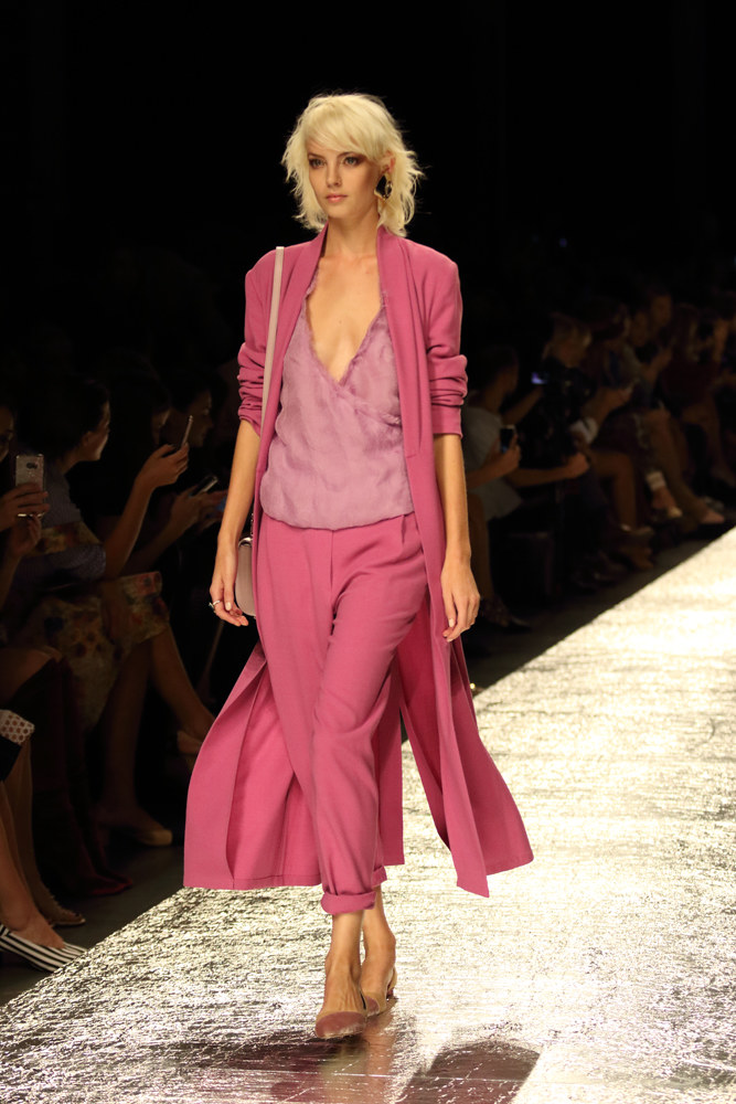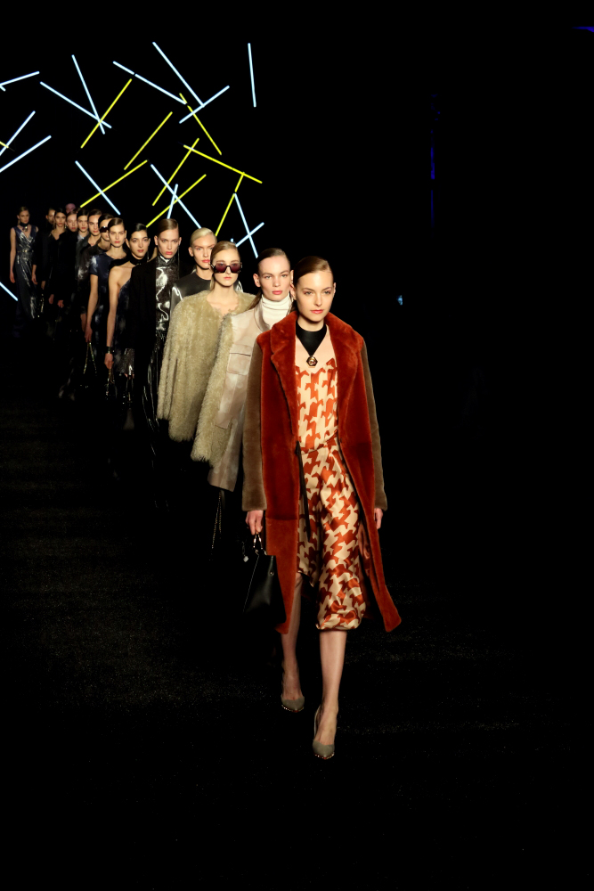 Si può usare il flash perché lo ha deciso lui;si è girato verso i fotografi prma di inizio sfilata ed ha dato il permesso a voce,diversamente son guai seri.Arriva la sicurezza,vi solleva e vi butta fuori nel senso materiale del termine,senza neanche curarsi se avete preso con voi l'attrezzatura(visto coi miei occhi),col rischio che il collega fotografo furbo di turno vi cannibalizzi tutto,sempre presente a tutte le sfilate.Il tempo passa così decido di immortalare il primo outfit della mia carriera.