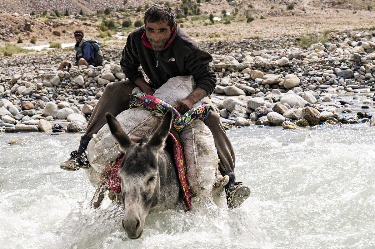 Poco fuori Bulunkul incontriamo i nostri portatori arrivati con un giorno di anticipo con gli asini e conosciamo Mamabec, la nostra guida, un ragazzotto con un lungo bastone di pioppo poco più che ventenne con il suo foulard multi funzione sempre al collo che serve sia per ripararsi dal sole che per soffiarsi il naso che per asciugare la tazza del the.