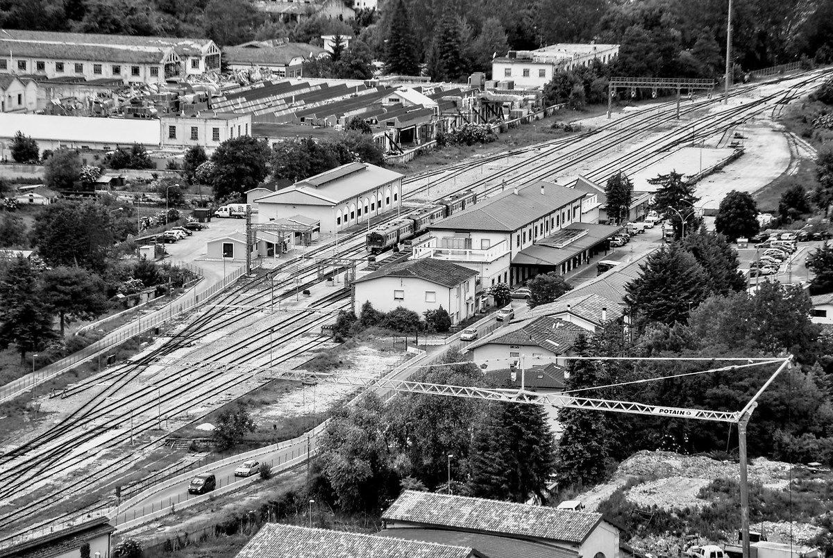 La stazione ferroviaria della città ha visto decrescere la sua importanza in seguito all'aumento del traffico su strada, soprattutto dopo l'entrata in funzione dell'autostrada Roma-L'Aquila, culminando con la soppressione nel 1987 del direttissimo Freccia del Gran Sasso, il collegamento diretto con Roma.Tra il 1986 e il 1988 la circolazione dei treni nella stazione fu temporaneamente interrotta per permettere l'esecuzione di un esteso intervento di sminamento, teso alla completa bonifica del piazzale dagli ordigni bellici risalenti alla seconda guerra mondiale (che più volte erano emersi durante semplici lavori di manutenzione), che portò all'estrazione di circa duecento bombe.[7] La stazione subì danneggiamenti dal terremoto che ha colpito duramente L'Aquila nel 2009, rientrando però in funzione qualche giorno dopo l'evento sismico.Nel 2010 la stazione ha subito degli interventi di riqualificazione allo scopo di renderla più funzionale ed accogliente[2] .