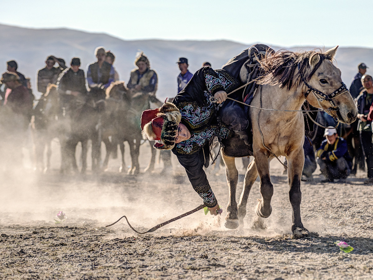 In un'altra gara di abilità (tenge ilu), tra le più spettacolari, il cavaliere si lancia al galoppo, incitato dagli altri partecipanti alla gara e dal pubblico; quest'ultimo comprende turisti e fotografi, ma anche, nella maggior parte, molta gente del luogo, spesso amici e famigliari dei concorrenti.