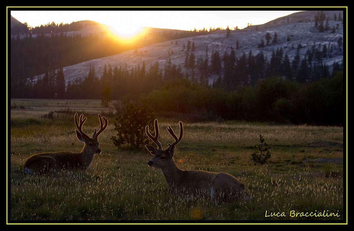 Curry Village , alla reception ci avvertono di non tenere cibo in macchina e di NON mangiare all'interno della tenda per paura di eventuali attacchi al cibo da parte degli Orsi. Accanto alla porta di ingresso della tenda troviamo una cassetta di metallo dove va depositato il cibo, francamente pensavo fosse un po esagerata la preoccupazione, ma mi dovrò ricredere.... La mattina quando ci svegliamo e ci dirigiamo in bagno lungo la strada ho il piacevole incontro con vari piccoli animali e dei cervi che passeggiano nel parcheggio del "campeggio". Continuiamo il giro del parco andando a vedere le cascate ma visto il periodo non troviamo molta acqua e le Yosemite Falls non rendono al massimo. Qua per le cascate bisogna venire a primavera quando si stanno sciogliendo i ghiacci e ce abbondanza di acqua. Fine mattinata ripartiamo e dopo una lotta con il navigatore, che secondo lui dovevamo fare un giro di 8 ore per la meta successiva , noi ci impuntiamo e decidiamo di proseguire alla vecchia maniera cartelli stradali ( quando si trovano ) e seguire le macchine davanti a noi, dovranno uscire pure loro.