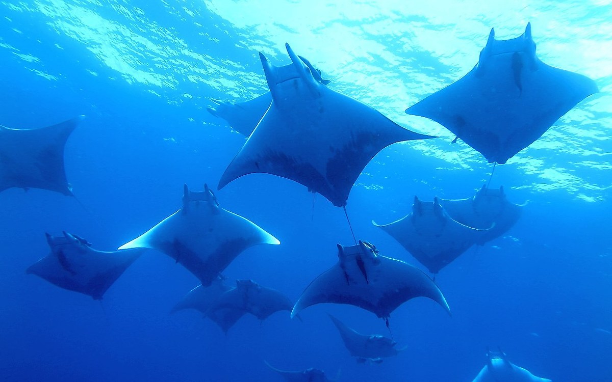 Un altro stuolo di mobule si incrocia in una danza dove gli unici che non si divertono sono i componenti del plancton.