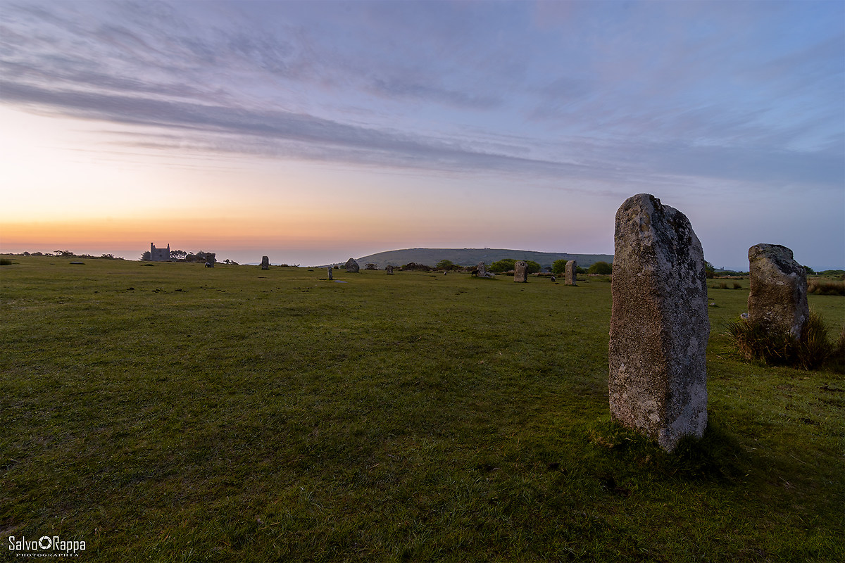 Nel sito sono presenti dei monoliti disposti a cerchio di piccole dimensioni,all'incirca una trentina di pietre.I colori sono morbidi e prevalentemente sul rosa, una struttura in fondo attrae la nostra attenzione.E' un'antico edificio minerario che dà accesso alle miniere di rame e stagno che caratterizzano il paesaggio della Cornovaglia e del Devon, nonchè dichiarato parimonio dell'Unesco nel 2006 durante il congresso di Vilnius.Scattiamo accompagnati da una leggerissima nebbiolina fino alle 9.30 circa, poi raggiungiamo la nostra base.