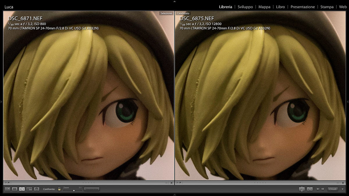 Ed infine ecco le immagini affiancate di Yuri ad ISO 800 e 12800 per una valutazione più precisa.