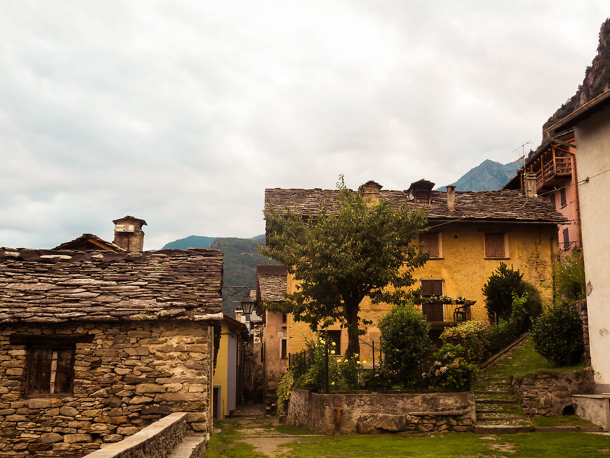 Il centro abitato è davvero piccolo e sembra rimasto con un piede nell'800: deliziose casette di sasso e legno, coi tetti di ardesia, strette l'una all'altra come per farsi caldo d'inverno e stradelli larghi a sufficienza per una bici. Basta che sia una mountain bike però, perchè sono lastricati con sassi e terra battuta. Entrare in macchina sarebbe impossibile anche se ci fosse una strada asfaltata, ma è meglio così: in questo luogo sarebbe decisamente fuori luogo.