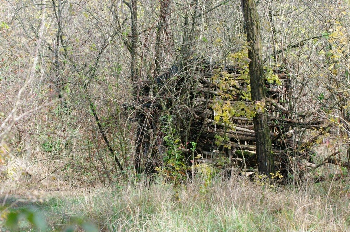 Tutti i boschi hanno un proprietario, può essere un Parco, un Comune, il Demanio, oppure un privato. Nel mio caso non ho fatto altro che ammucchiare vecchi rami presi in loco, basta toglierne uno e il tutto casca. Per rendermi invisibile mi porto sempre un telo con feritoie, con lacci di scarpe lo fisso ai legni, e il gioco è fatto, al termine lo ritiro nello zaino e me ne vado lasciando tutto come prima. Si può parlare di costruzione? Quest'anno sono 4 anni che è in loco, nessuno ha mai detto nulla. La risposta alla tua domanda è no! occorre sempre il permesso del proprietario. Ciao. |