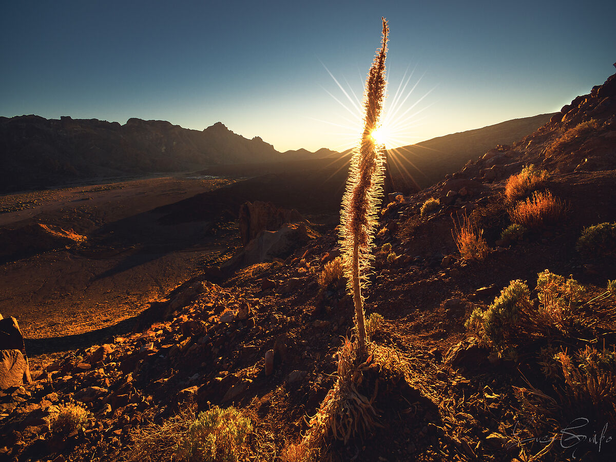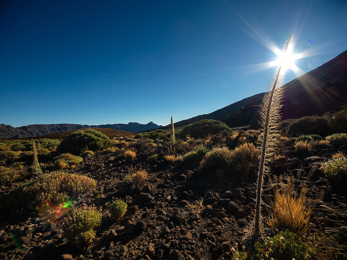 Sono le 18, la temperatura è ancora gradevole, siamo intorno ai 23/24 gradi, e decidiamo di fermarci per un po' al Mirador Llano de Ucanca poichè ho intravisto qualche pianta, seppur secca, di Viperina e quindi cerco qualche bella composizione, giocando anche con la posizione del sole.