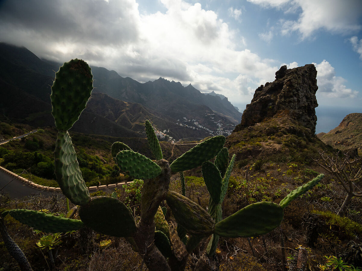 La strada per arrivare a Taganana, il borgo più vicino alla playa, è impervia e molto ripida, con passaggi molto panoramici. Si passa per San Andres, dove c'è la spiaggia dorata e sabbiosa più grossa del nord dell'isola, e da qui parte la salita. La piccola Opel ogni tanto mostra segni di debolezza, ma basta scalare di una marcia e riprende vigore. La strada non è larga, ma nemmeno troppo stretta considerando che siamo a picco sul Barranco e che saliamo con pendenze talvolta superiori al 10%: ad ogni km di salita, la temperatura si abbassa ed il vento si fa più frizzante. Ci avviciniamo a vista d'occhio a quelle nuvole che contribuiscono a rendere questa parte dell'isola così umida e piovosa, e i loro giochi quando si scontrano con le creste rocciose catturano spesso e volentieri la nostra attenzione. Bisogna far attenzione alle curve, talvolta a 270gradi, perchè incrociare un'auto in quei punti non è piacevole, pur essendo con una piccola utilitaria. Dopo aver superato il bivio che porta al Teide passando per San Cristobal de la Laguna, la salita non si ferma ma anzi, si fa ancora più ripida. E qui troviamo il primo punto panoramico nel quale ci fermiamo ed inizio a saltellare a destra e sinistra per scattare. I giochi delle nuvole non si fermano, perciò ogni secondo la situazione di luce cambia.