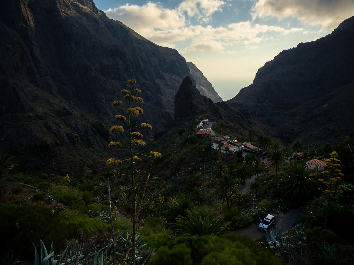 Entriamo in auto e ci dirigiamo in direzione Santiago del Teide, dove l'autopista, che ormai ha le nostre impronte sull'asfalto, finisce e inizia la strada peggiore percorsa finora sull'isola, roba che la strada per andare a Taganana in confronto è un'autostrada. La strada è ripida, stretta, le curve sono cieche, insomma, prestate molta attenzione a questa strada. in compenso però la vista panoramica è splendida, stiamo entrando in uno dei Barranchi più belli dell'isola, e fortunatamente possiamo farlo in auto e non con diverse ore di trekking, come avviene solitamente. Ci fermiamo un paio di volte lungo il tragitto perché qualcuno rompe l'anima con ste foto (#FOLLOWMETO ormai è parte di noi), e in circa un'oretta siamo a Masca.