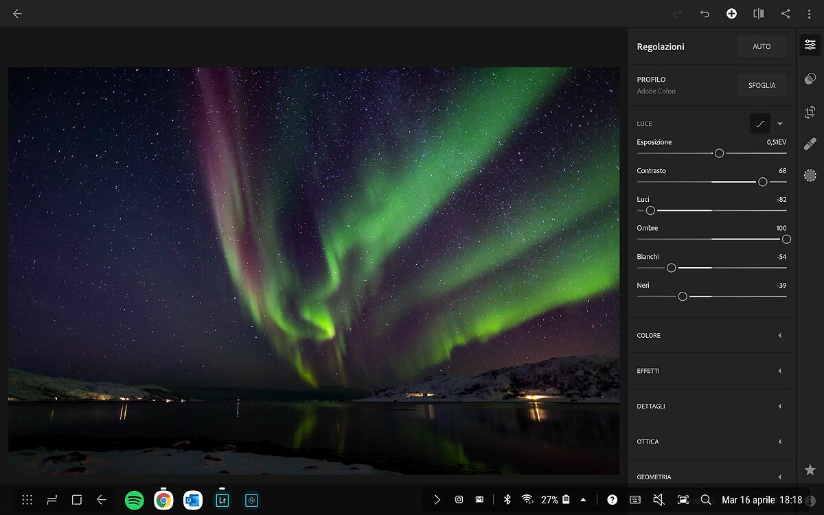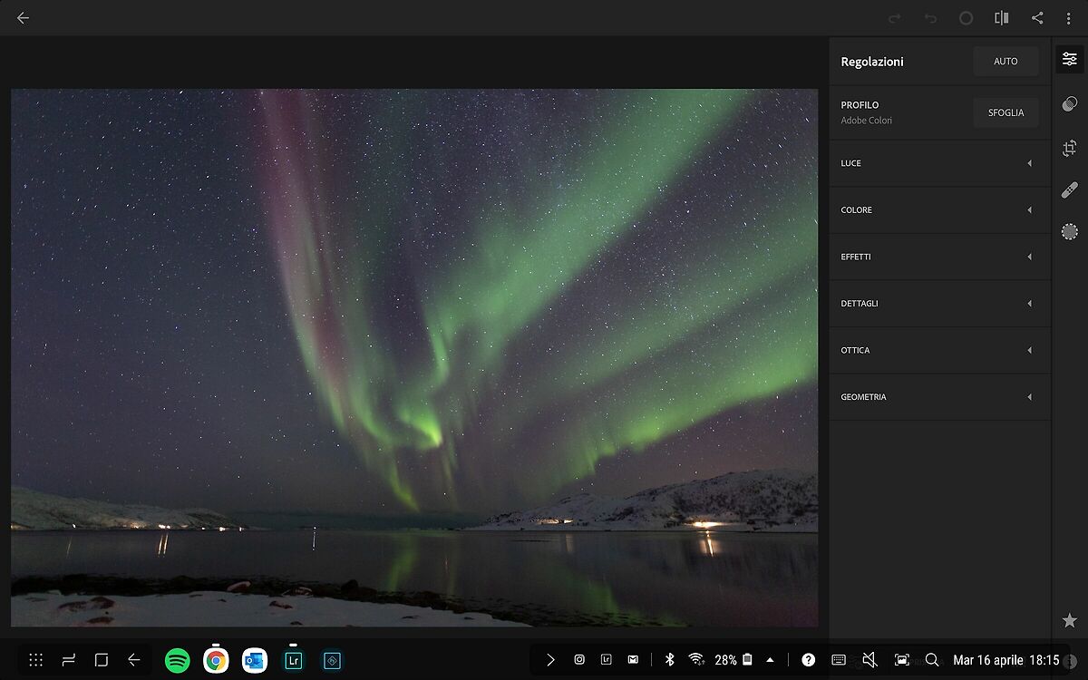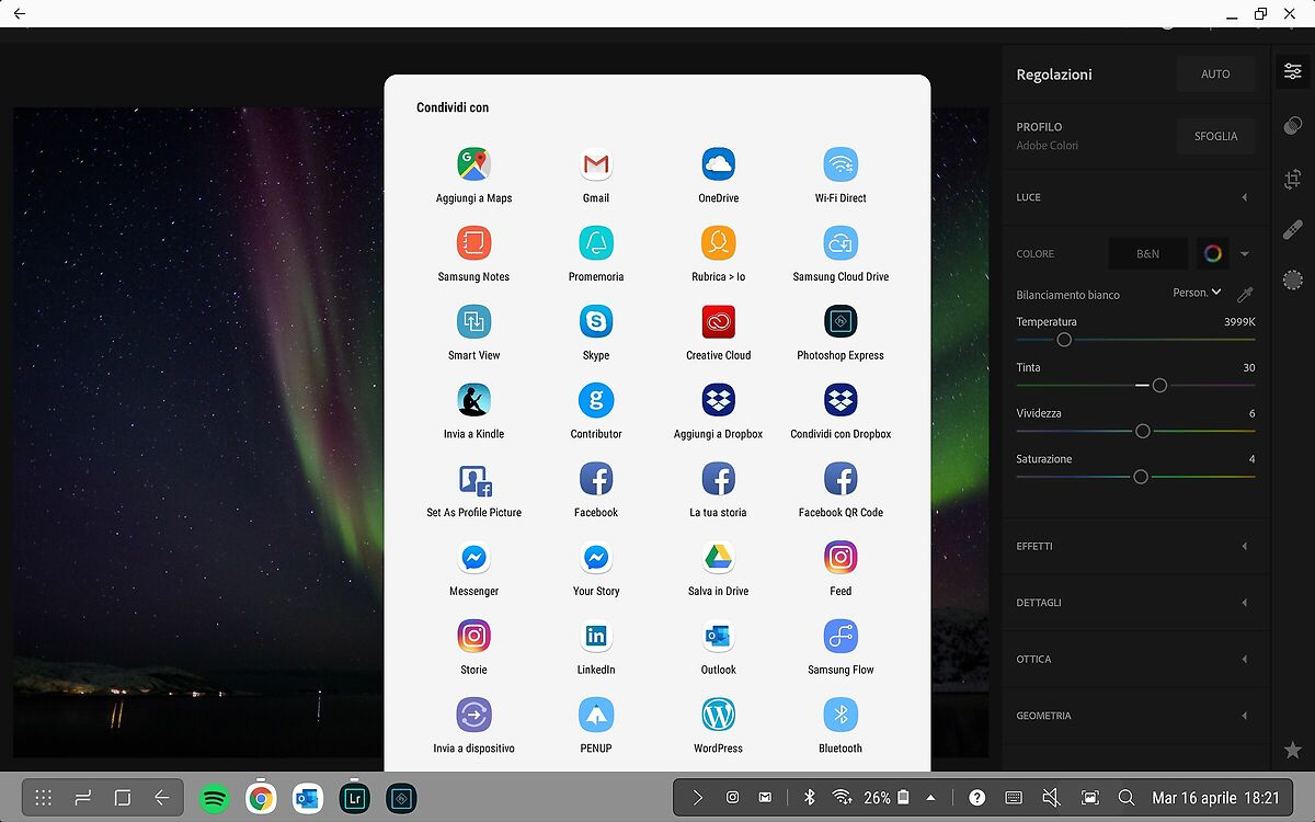 Ovviamente essendo un tablet con funzioni desktop, non ha le stesse caratteristiche, per cui non tutti i software di fotoritocco posso girare, ma ovviamente per chi avesse la suite Adobe ed utilizzasse Lighroom e Photoshop, beh sul Samsung girano!