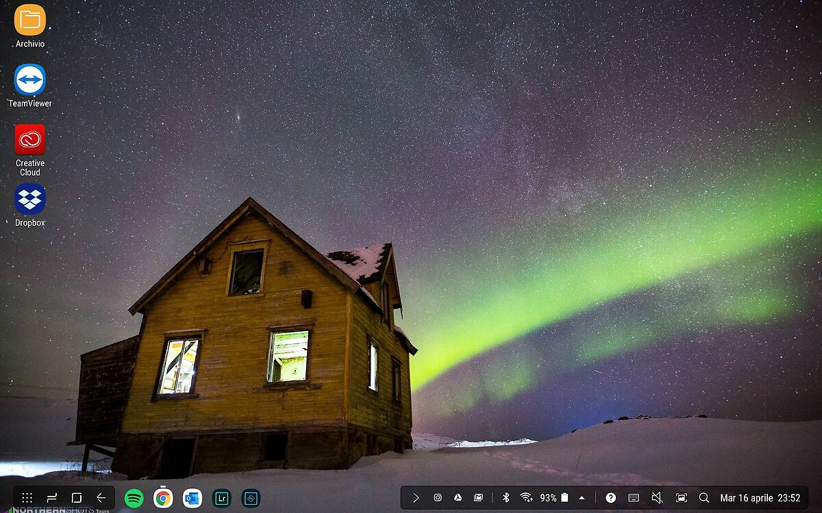 Schermata Home in modalità DEX, ossia la modalità desktop multitasking