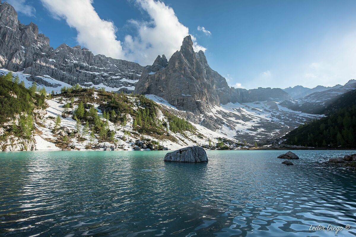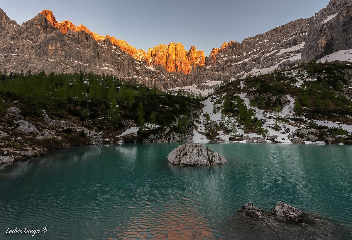 In questo scenario fiabesco, superata una radura mi si apre alla vista uno spettacolo! Sono in estasi. Le acque turchesi del Sorapis, incastonate tra le pareti rocciose dell'omonimo gruppo dolomitico..brillano.