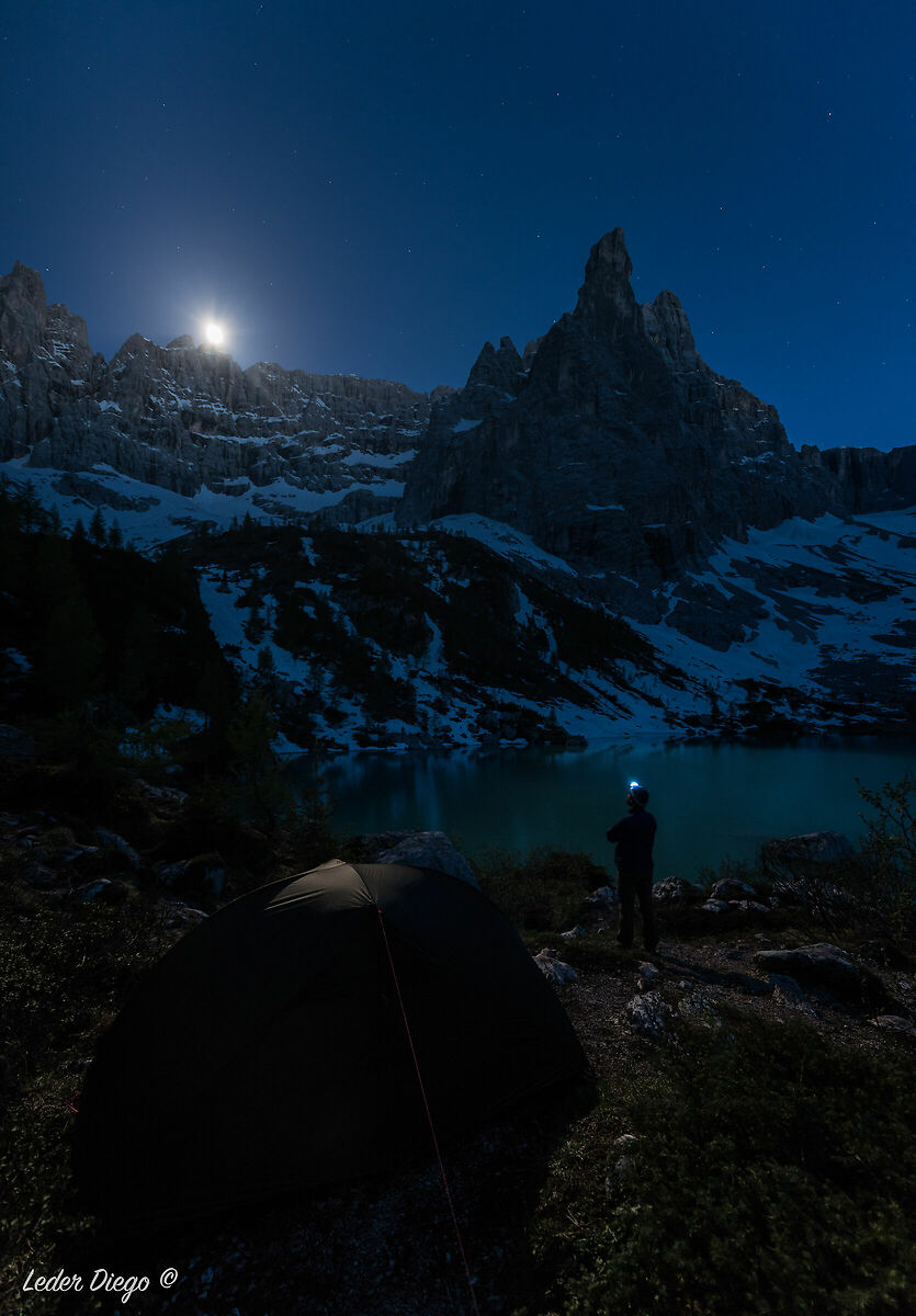 La notte ora è inoltrata, è passata la mezzanotte. E sopra il Sorapis la luna sta illuminando con la sua tenue luce l'ambiente..c'è così tanta luce che ho persino la mia ombra!