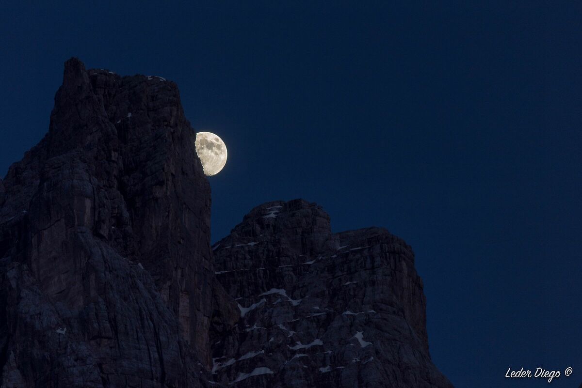 Continuo la mia cena, e poco dopo, questa volta decisamente più in alto..sul limitare delle creste frastagliate del Sorapis un bagliore intenso inizia a spuntare da dietro le rocce . Proprio lì sopra la mia testa sta per uscire la luna questa volta ho il tempo di mettere il tele ed immortalare l'attimo! Che spettacolo!