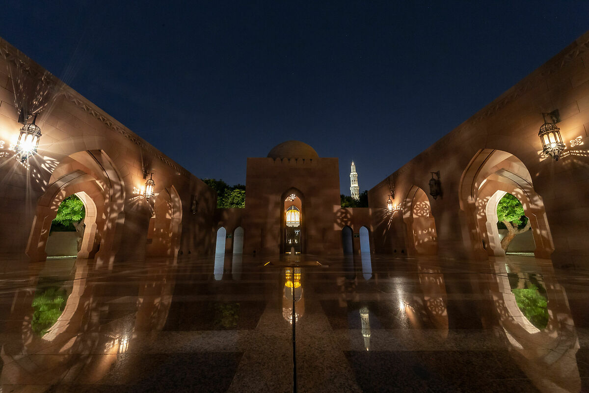 L'aereo atterra a Mascate o Muscat, capitale dell'Oman. E' una città di medie dimensioni, pulitissima dove si cammina spesso in pavimenti lastricati di pregiati marmi, mentre si osservano le persone in strada attraverso vetri colorati e cancelli in ferro battuto con complicati motivi ornamentali. Giusto il tempo di visitare la grande moschea, che si raggiunge la Royal Opera House.