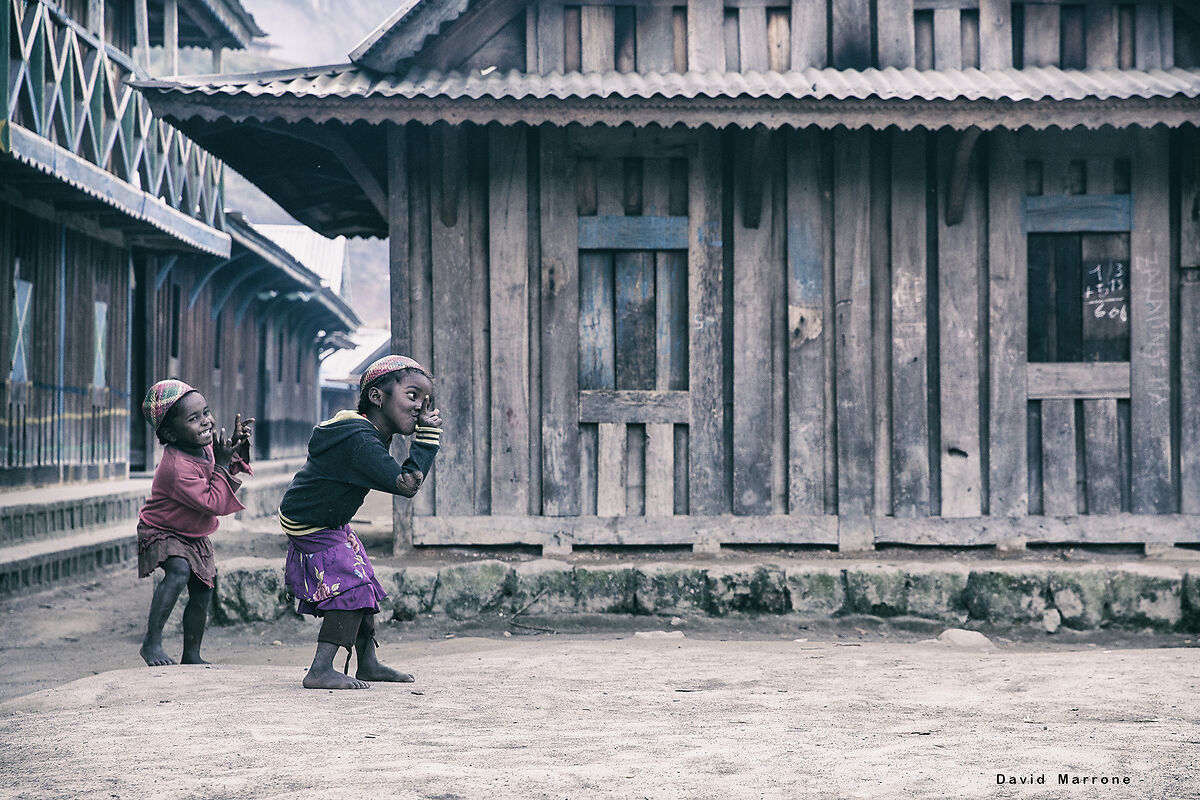Ecco, Giovane Vecchio, questi sono i momenti africani che preferisco: e' vero che il facile diventa difficile in questa parte di globo, ma e' anche vero il contrario. I piatti, e la nostra guida del giorno successivo (George) arrivano insieme. Le istruzioni sono chiare: sveglia all'alba, spostamento in macchina per un paio di ore, quindici km di trekking, pernottamento in un villaggio sperduto in mezzo alle montagne. Il percorso non e' difficile, ma ad una salita segue sempre una discesa e viceversa. Piva si infastidisce, perche' per George ogni salita e' l'ultima, senza esserlo veramente. E' il suo modo per non farci mollare, e forse oggi lo capisco più di allora. Quando abbiamo smesso di crederci veramente percorriamo l'ultima salita che ci porta a Sakaivo, il villaggio che ci ospiterà per una notte. Siamo i "vasah", gli stranieri. I bambini ce lo urlano dietro e scappano quando noi proviamo a fargli le foto; più proviamo a scattare più scappano. Ad un certo punto, anche se rinunciamo a fare foto scappano lo stesso. Poi una bambina in età d'asilo mi si avvicina, nota che ho la manica della felpa piena di semi. Era la stessa bambina che sorrideva, mi diceva "vasah" e poi scappava. Ora mi chiede solo di fermarmi, e ad uno ad uno mi leva tutti i semi, mentre io inizio a sciogliermi.