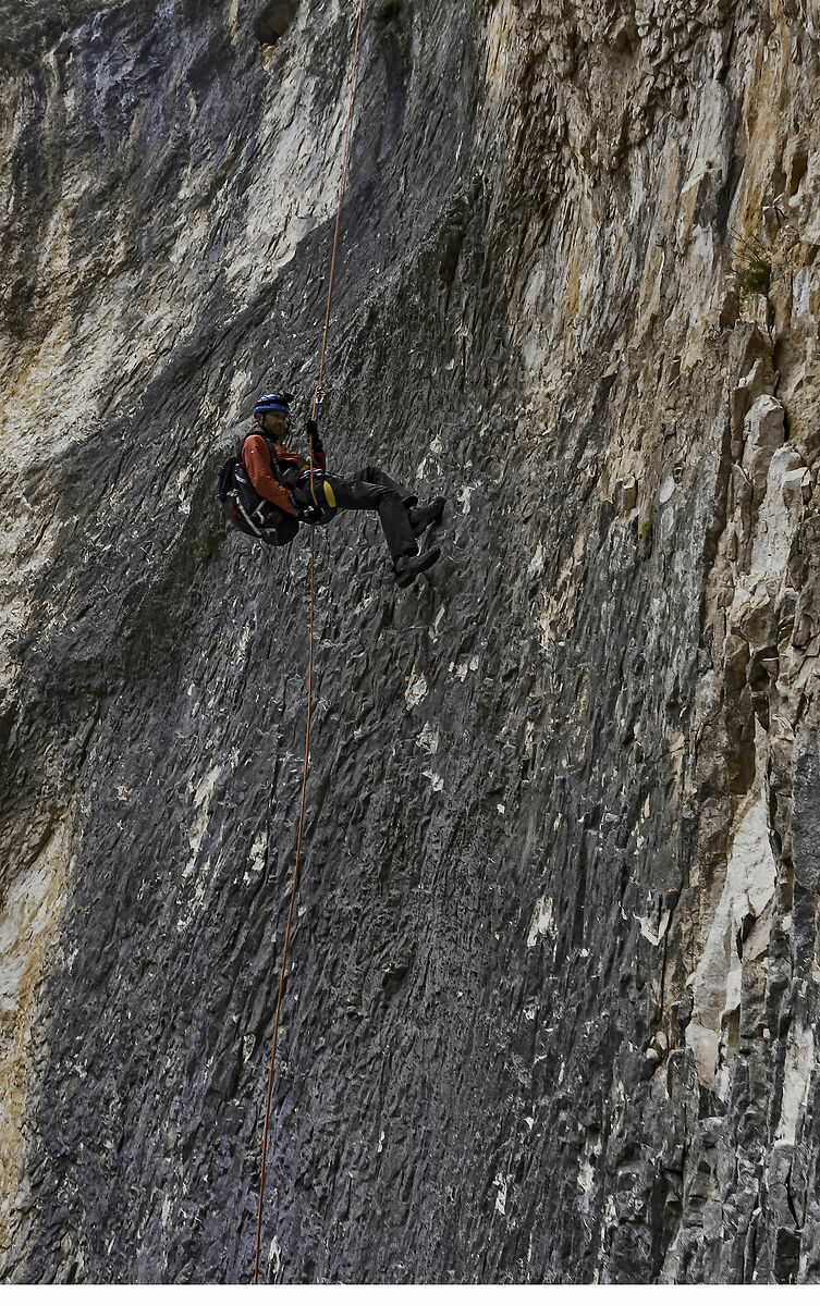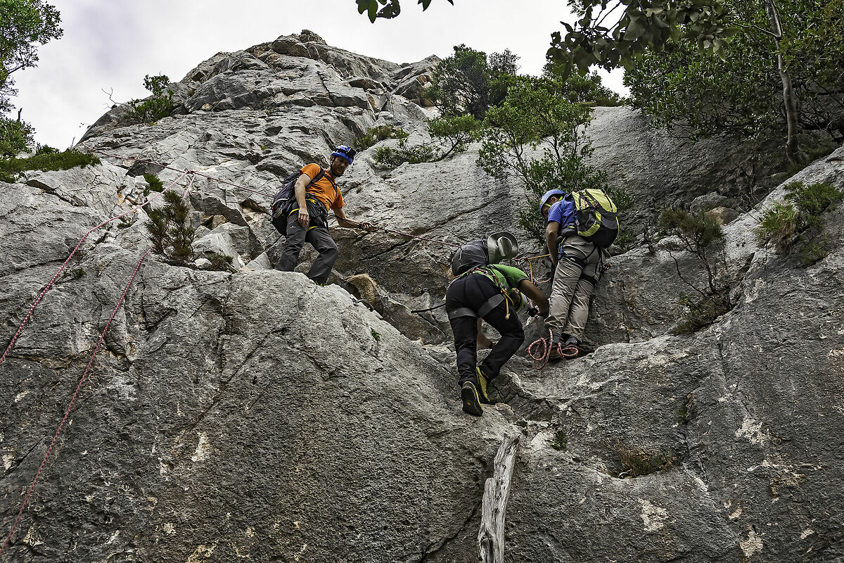 Eravamo solo 3 più la guida causa Covid 19 che ha bloccato 3 amici inglesi. E questo è stato un bene perchè eravamo veloci specialmente nell'eseguire le circa 25 calate in corda doppia e i 4/500 metri di arrampicata non difficile ma nemmeno banale. Siamo rimasti ogni giorno in testa senza accodarci agli altri gruppi più numerosi di trentini, piemontesi, alto atesini, tedeschi e francesi tutti con guida alpina e accompagnatore locale, indispensabile se uno vuole uscirne senza incasinarsi di continuo.