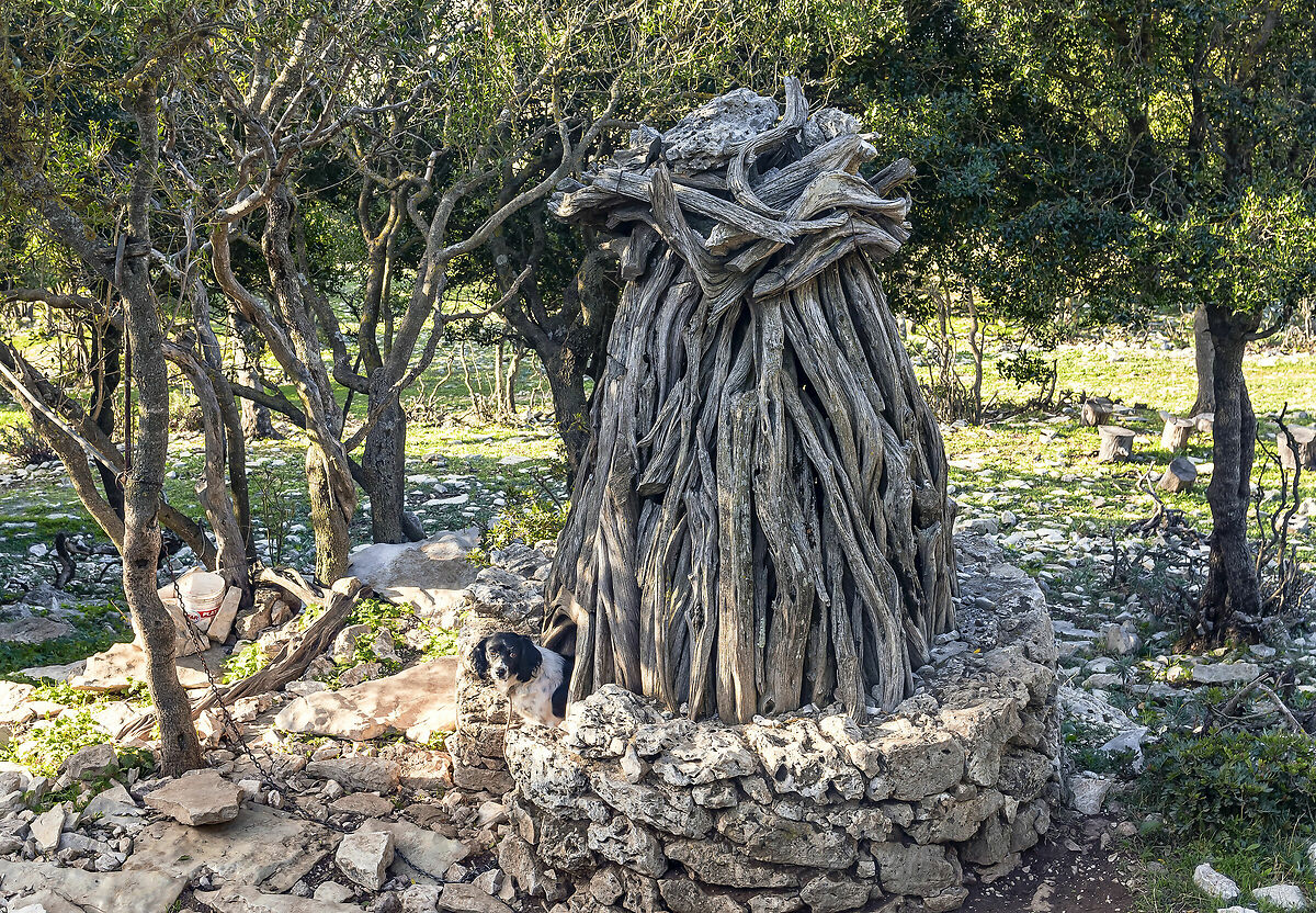 Lasciata un auto per il ritorno a Genna e Mudregu e l'altra all'ovile De Us Piggios dove anche le cucce dei cani sono fatte come le capanne dei pastori con tronchi di ginepro, dette Cuile oppure Pinnetto sardo