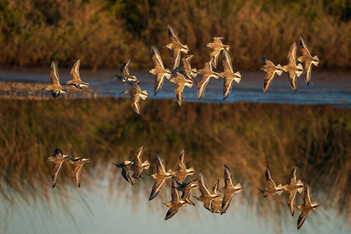 Oggi si può riuscire facilmente a riprendere in posizioni plastiche e spettacolari i mille modi di volare di limicoli e anatre, passeriformi e ardeidi, talvolta caratterizzate da formazioni a "V" utili per risparmiare energia, talvolta invece orientati a confondere un predatore come fanno gli storni e i limicoli quando si spostano in gruppo. Il sincronismo degli uccelli che fanno parte di uno stormo fornisce spesso immagini altamente spettacolari sempre diverse non solo per le condizioni della luce, ma anche per le posizioni reciproche e delle ali che di volta in volta assumono i soggetti ripresi. È estremamente bello e interessante il volo di uno stormo rispetto a quello di un singolo. Da questo punto di vista mi interessai sin da giovane a scattare agli stormi in migrazione, rispetto a Maurizio che preferiva invece gli scatti ai soggetti isolati. Comunque sia rimane il fatto che gli uccelli sono dotati dalla natura di ali che utilizzano nei modi più disparati, mostrando la loro grazia e leggerezza soprattutto con i venti avversi o laterali, come quelli di scirocco che accompagnano le loro migrazioni primaverili al mare. I gabbiani corallini volavano contro vento verso sud con una facilità sorprendente. Certamente è molto più agevole e facile fotografarli quando sono posati. Un po' come risolvere una semplice operazione di addizione anziché una equazione di secondo grado. Vuoi mettere le difficoltà a laurearsi in ingegneria rispetto ai calcoli di terza elementare?