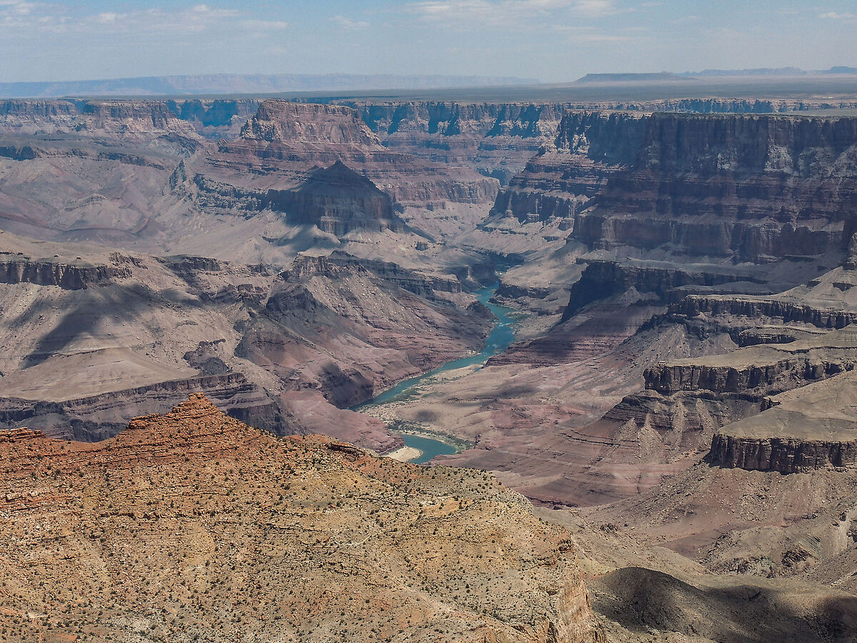 Rimango un po' deluso dal GRAND CANYON in generale, forse la difficoltà nel portare a casa dei buoni scatti, oppure la sua vastità, è veramente "grande", mi sembra di essere sempre nello stesso punto, nonostante i chilometri percorsi fino al capolinea della LINEA ROSSA, faccio anche fatica a concepire di come il fiume COLORADO possa aver contribuito a creare una gola lunga quasi 500 chilometri e profonda quasi 2000 metri, con una larghezza che varia dai 500 metri fino a 29 chilometri.
