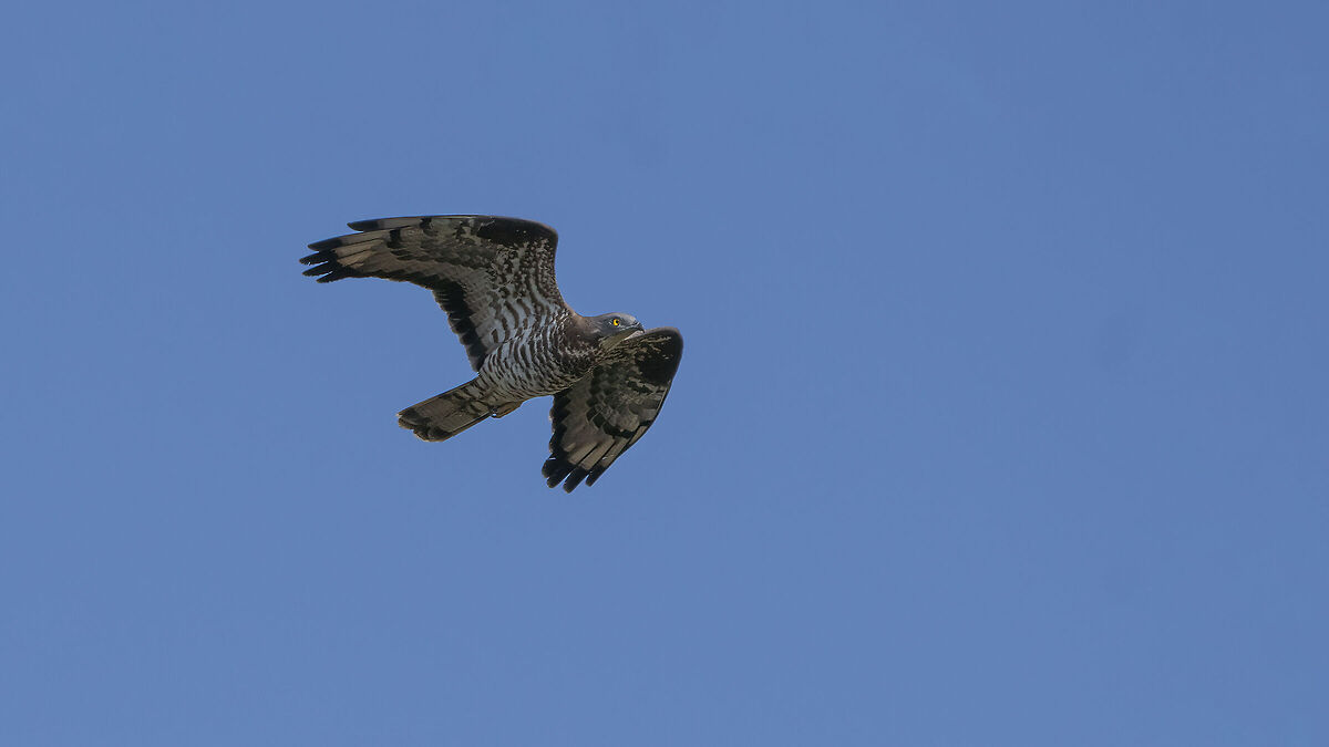 Giorno 2. Se ieri era scuro, oggi è chiaro. Il cielo molto velato, totalmente bianco. Data l'estrema luminosità dello sfondo, tutto quello che passa è un punto nero. Ma nessuna preoccupazione, tanto non passa quasi niente. Una 20ina di pecchiaioli altissimi in tutto, qualche palude femmina, un pellegrino alle stelle, gheppi, sparviero e poiane locali.