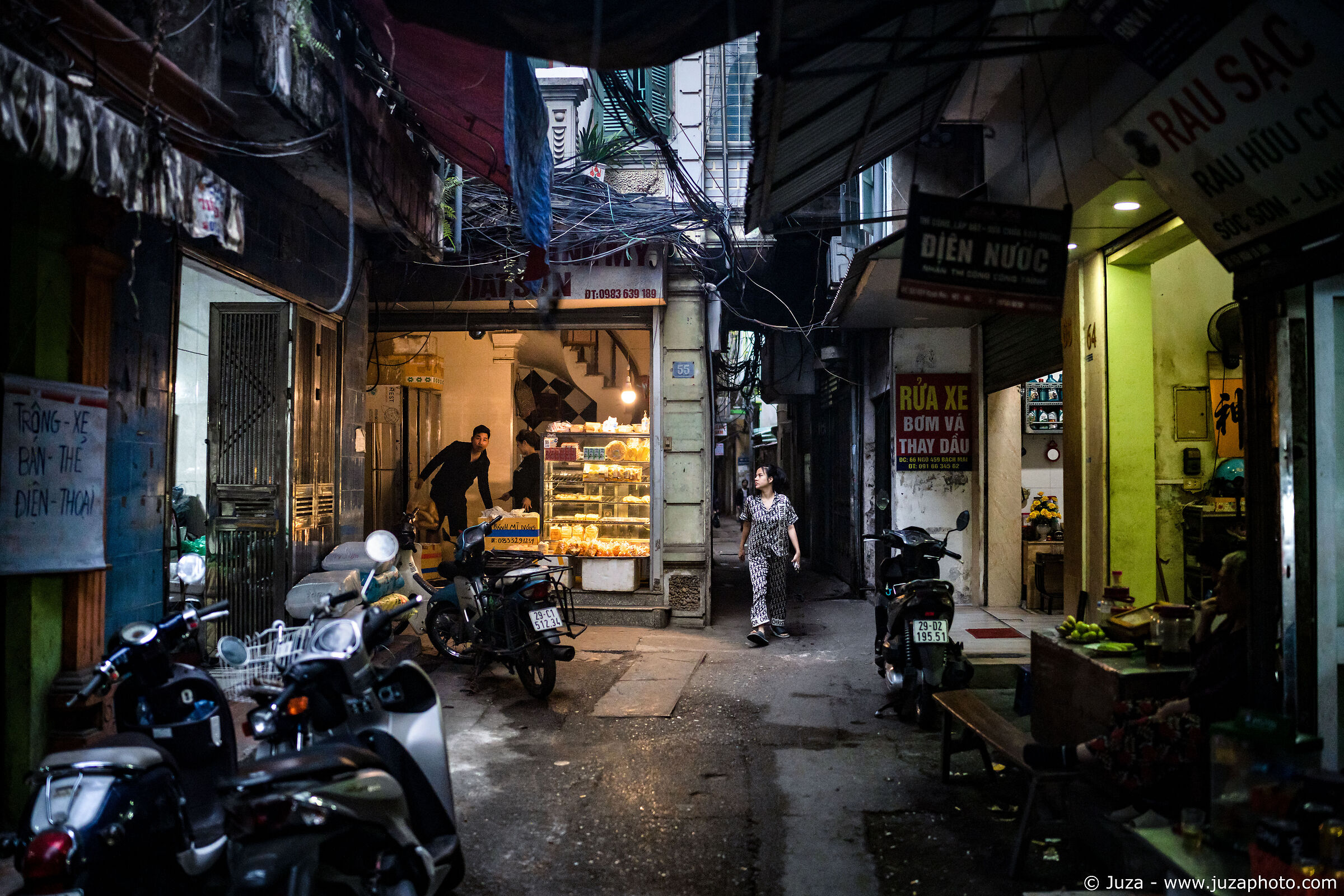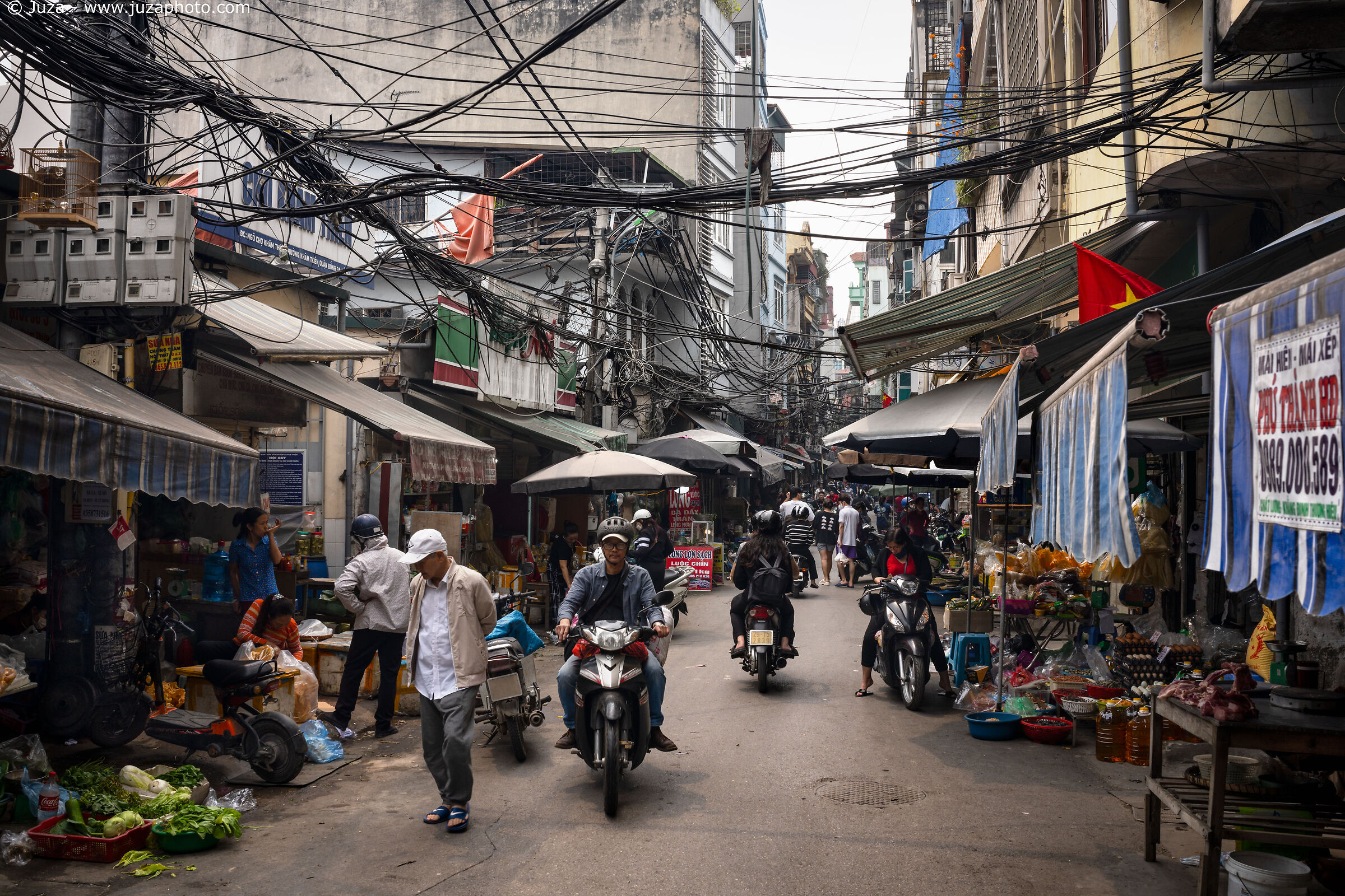 La periferia di Hanoi non è così estrema, ma anche qui la città ha un fascino caotico, fatiscente. A un paio di metri sopra le strade sono appesi disordinatamente centinaia di cavi elettrici: qui i cavi non vengono fatti passare sottoterra e neppure nelle pareti; al contrario, sono sospesi sopra la strada e da lì raggiungono le abitazioni attraverso le finestre e i balconi, una cosa inimmaginabile nel nostro paese.