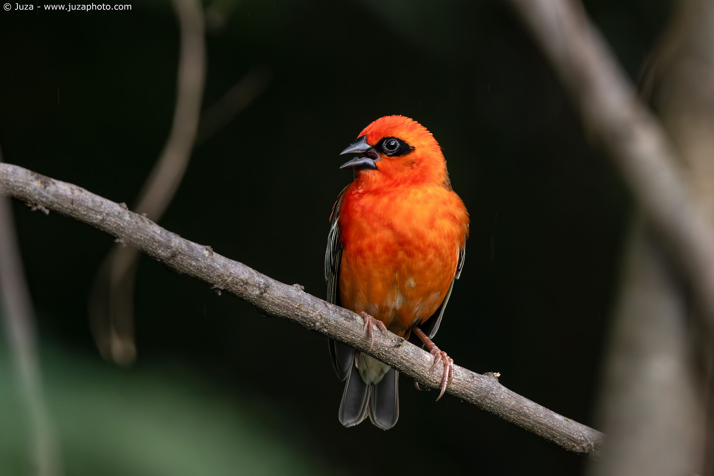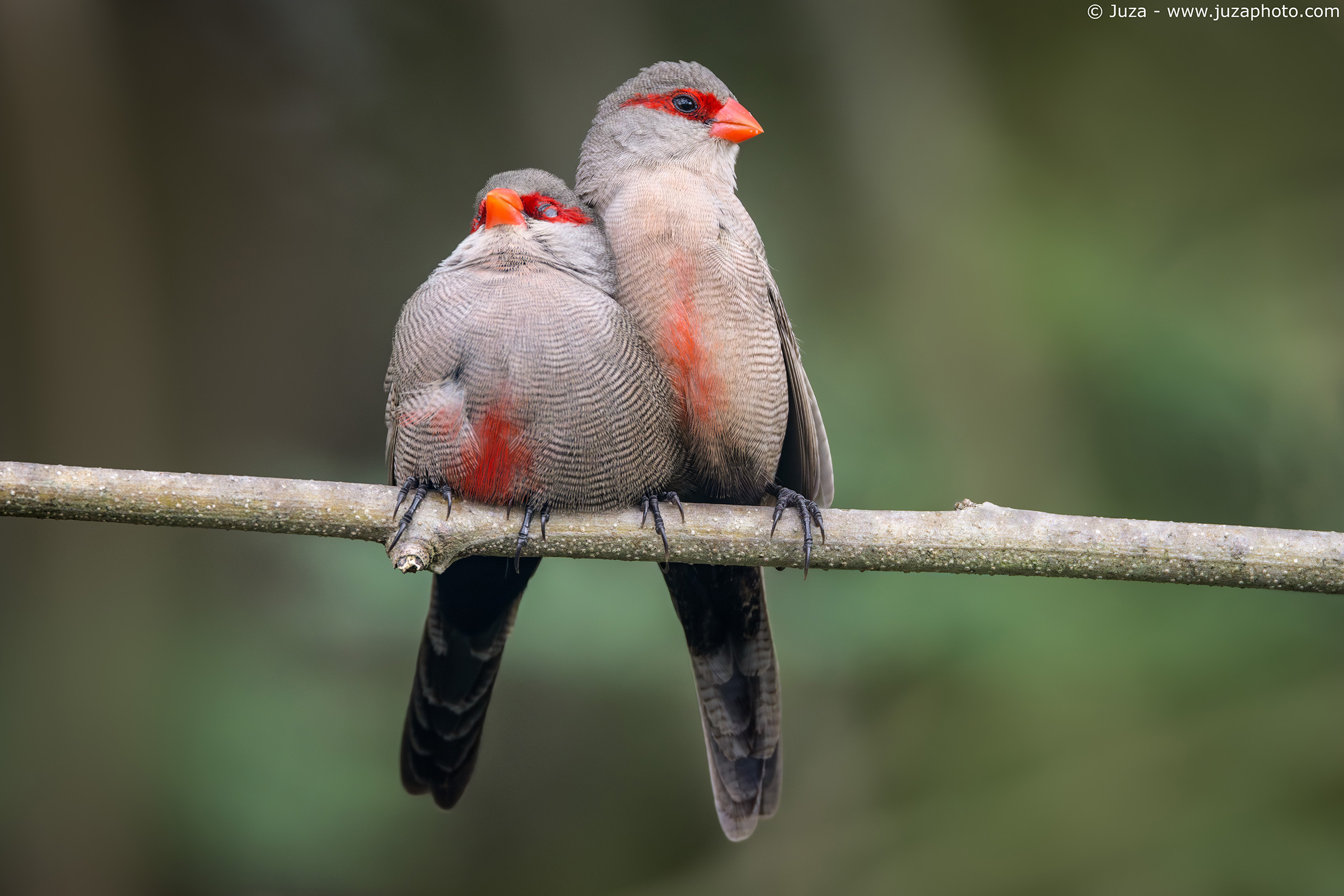 Canon EOS R7, Canon RF 100-500mm f/4.5-7.1 L IS USM a 500mm, 1/320 f/7.1, ISO 1600, mano libera. Una delle scene più belle che ho visto in tutto il viaggio: questa coppia di waxbill (Estrilda astrild) si puliva le piume a vicenda, si scambiava effusioni e saltellava da una parte all'altra, sempre assieme.
