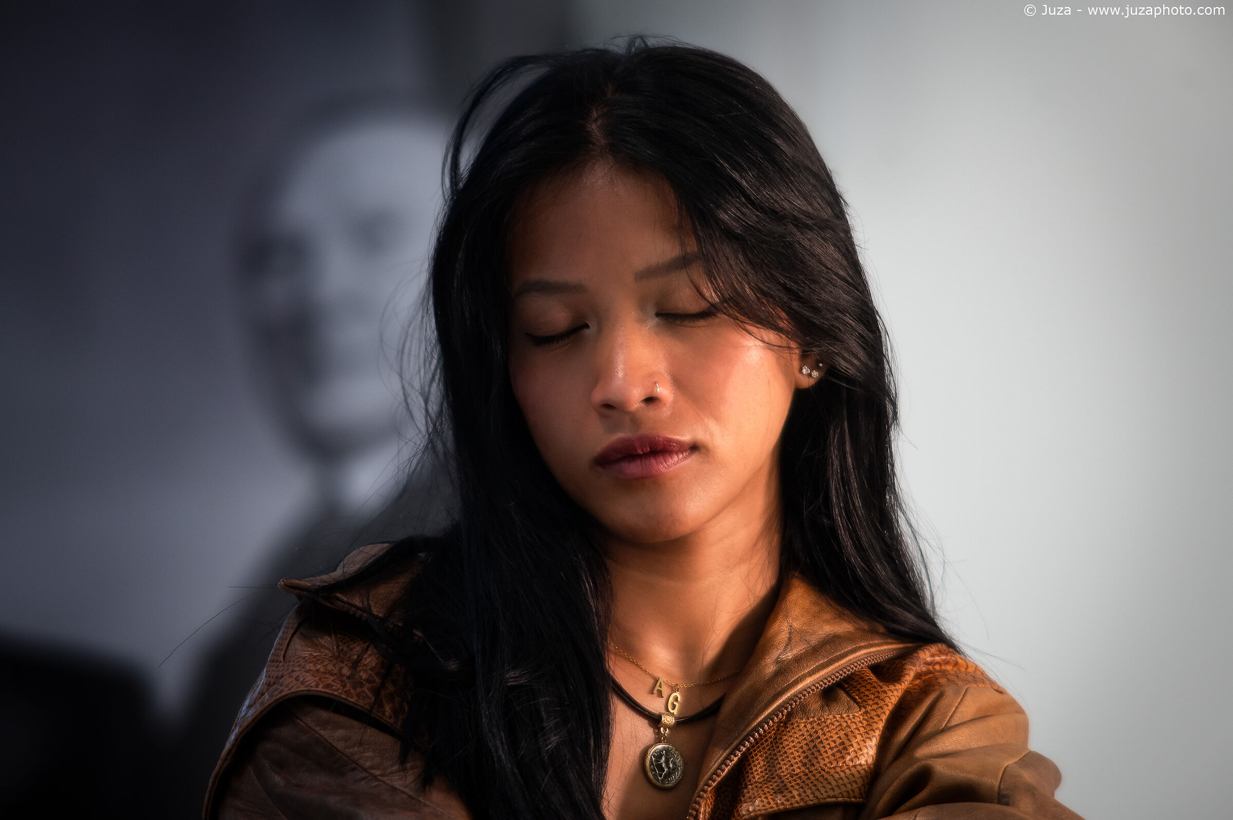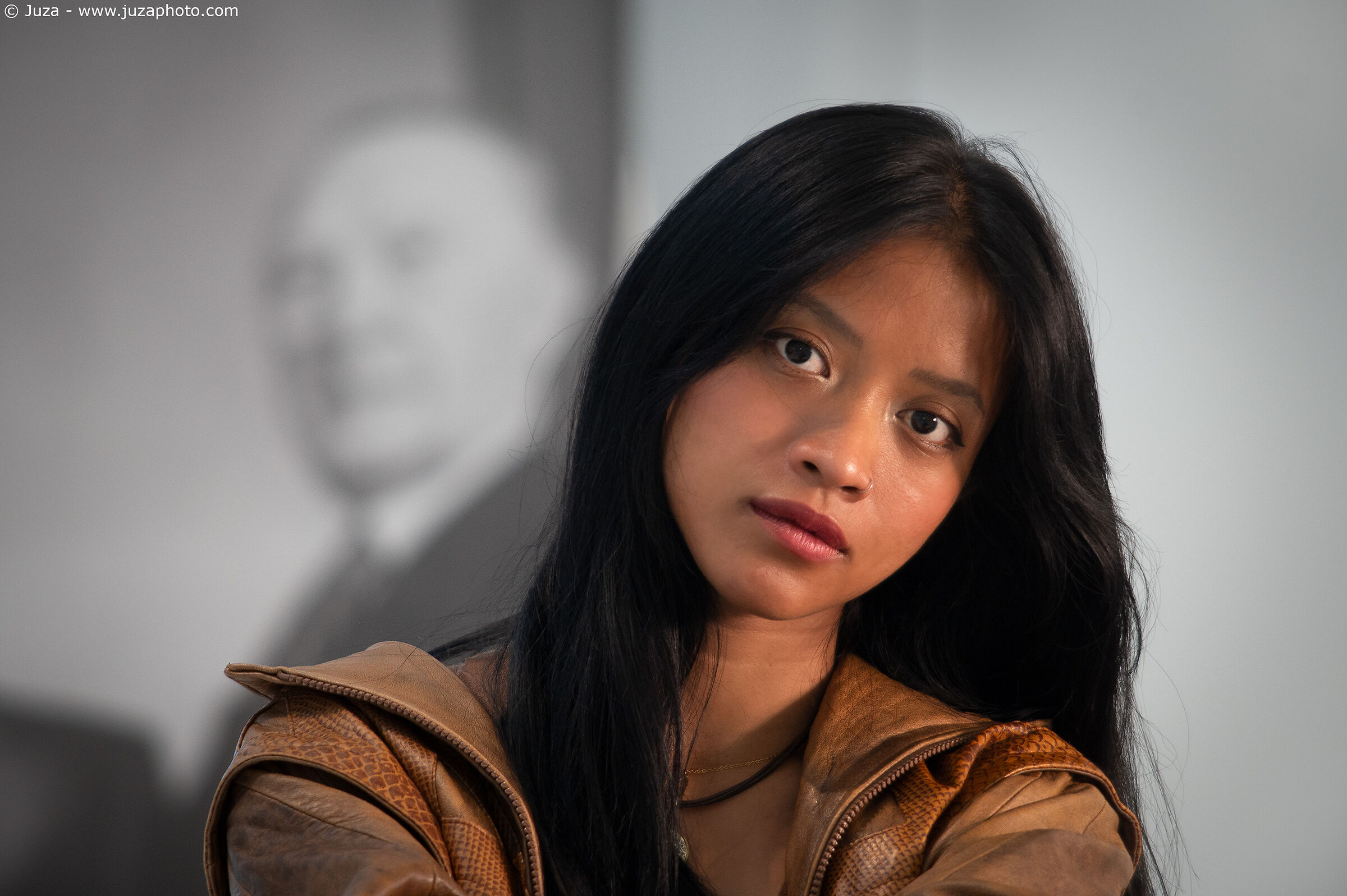 Dalle distanze siderali a cui ci obbliga questo obiettivo, mai pensato per il ritratto, osservo Azzahra attraverso il mirino. Modella non professionista, ma con una dote innata per posare e con una pazienza infinita; ogni foto richiede un notevole impegno, vista anche la necessità di mettere a fuoco manuale. Posiziono due faretti a lato per simulare la luce dell'alba e scatto cercando di cogliere ogni espressione.