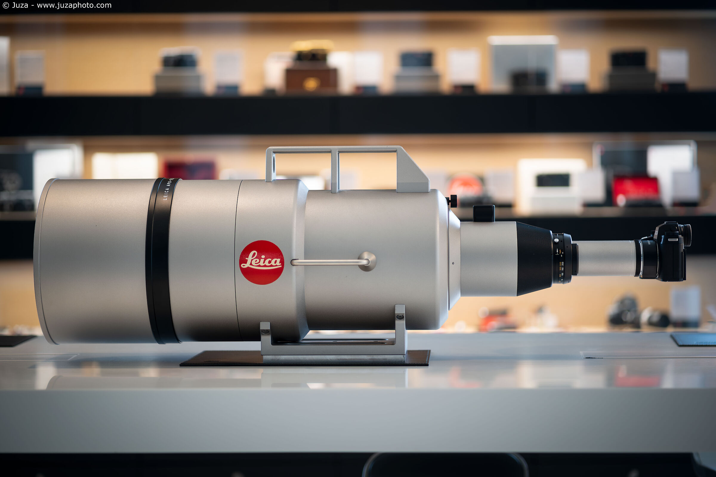 Saud bin Muhammed conosceva bene Leica: aveva un'ampia collezione di corpi e lenti Leica M e Leica R, tra cui alcuni personalizzati su commissione o realizzati in tirature limitatissime. Ma un giorno si presentò in Leica con una richiesta che andava ben oltre una fotocamera con i colori del Qatar o con l'incisione del nome: costruire da zero un obiettivo mai visto prima, una focale che nessun altro aveva mai osato. Un 1600mm f/5.6, qualcosa da far sembrare giocattoli i classici 400 f/2.8 e 600 f/4; neppure il titanico Canon 1200mm f/5.6 si avvicina alla portata e alla stazza di un'ottica del genere.
