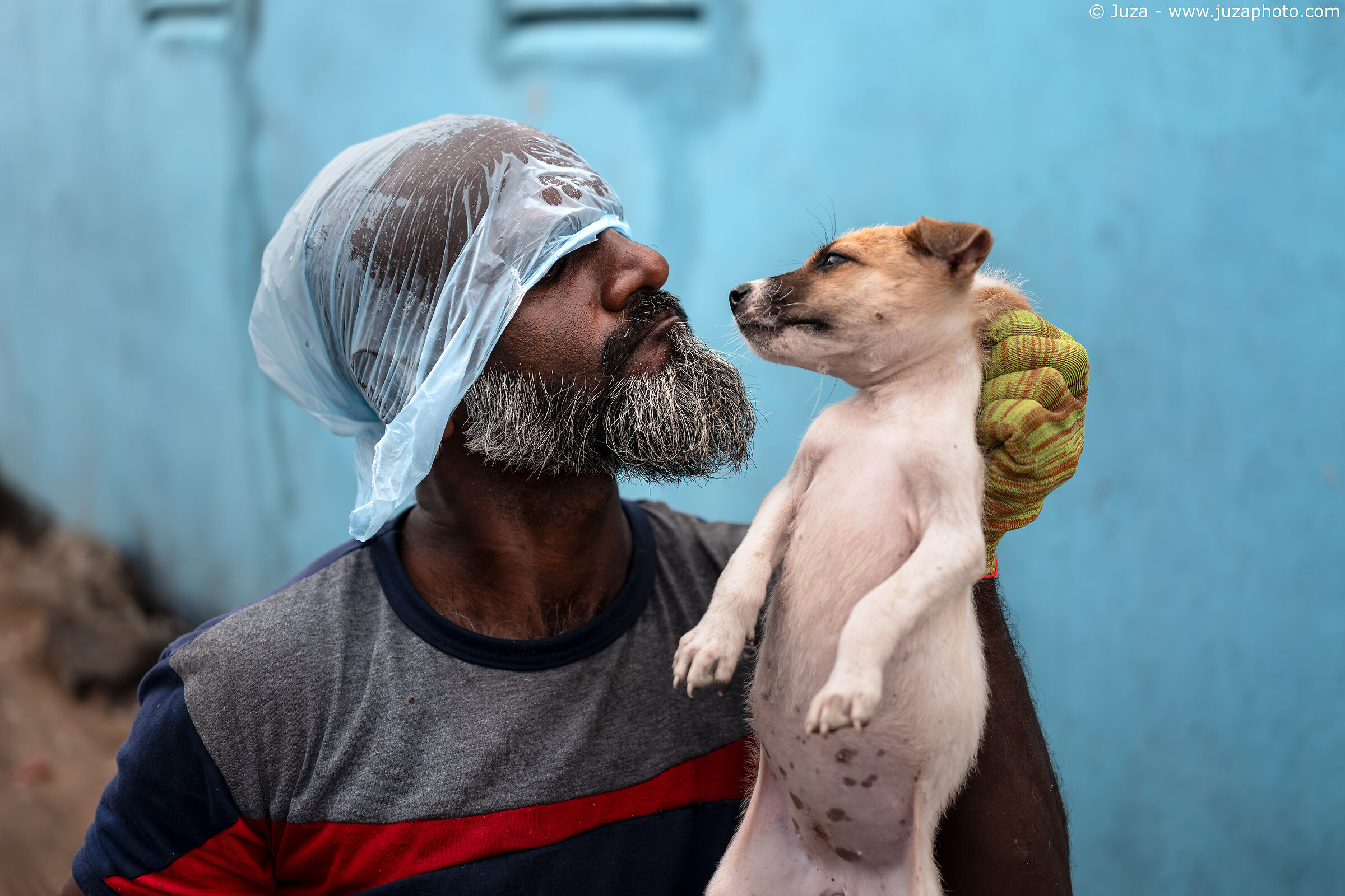 Leica Q3 43, 1/400 f/2.0, ISO 400, mano libera. Negombo, Sri Lanka. Tantissimi cani randagi vivino nel porto di Negombo, e questo cucciolo si era intrufolato sul banco del pesce per procurarsi la colazione. Colto in flagrante dal pescatore, si è beccato un'occhiataccia ma alla fine l'ha lasciato andare tranquillamente e senza dubbio il nostro amico a quattro zampe sarà comunque riuscito a trovare qualcosa da mangiare, nella zona ci sono resti di pesce un po' ovunque e i cani del porto hanno vita ben più fortunata degli altri numerosissimi randagi che popolano l'isola.