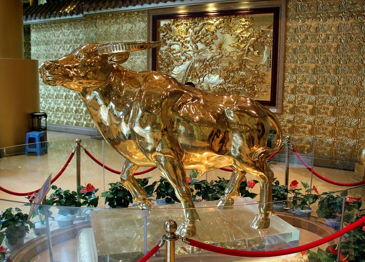 La principale attrazione è, naturalmente, il piano dorato, dove tutto, anche le bacchette del ristorante, è dorato, e il cui pezzo forte è il toro d'oro massiccio che troneggia davanti a te appena vi entri: trentacinque milioni di euro, grossomodo, il suo valore. Sarebbe bello comprare Il Toro pagandolo con quel toro.