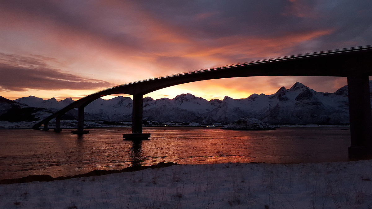 Oggi dedichiamo le foto all'alba alla zona di Gimsoya , troviamo uno scorcio bellissimo con un ponte e subito dopo i classici merluzzi appesi a essiccare. Colori e sfumature meravigliose di rosa e rosso, poi partiamo alla volta di Svolvaer per fare gasolio ( siamo quasi a secco) , un po di spesa ( REMA ) e fare le ultime foto con la luce a Svolvaer .