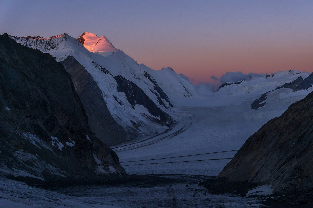 Siamo solo all'inizio di Settembre e su social, webcam e telegiornali mi dispero guardando le immagini delle abbondanti nevicate di questi giorni. Se già nevica ora presto sarò costretto ad abbandonare l'alta quota per svariati mesi, e ridurmi a girovagare per quelle prealpi che - nonostante l'affezione - non soddisfano la mia ricerca preferita: quella alla remotezza più assoluta. Con una mossa disperata decido di aggrapparmi alle ultime giornate d'estate e, fingendo di ignorare la preoccupante situazione, mi organizzo per un giro solitario in tenda di un paio di giorni. Sto fissando lo zaino carico di materiale, chiedendomi se davvero riuscirò a percorrere quei duemilaseicento metri di dislivello così carico, quando mi arriva il solito messaggio a stravolgere i piani. Mi viene proposto a sorpresa un giro nell'Oberland, e in particolare a uno dei suoi quattromila, partendo il giorno successivo. Guardo di nuovo lo zaino che, così esplosivamente pieno, sembra volermi garantire qualsiasi tipo di rogne possibili. Scordo all'istante tutti i problemi legati alle nevicate recenti, rispondo positivamente al messaggio e butto all'aria tutti i preparativi. D'altronde è l'Oberland! E' quella regione delle Alpi Svizzere che da un paio d'anni è nel mio mirino, probabilmente perché, a giudicare dalle foto e dalle descrizioni, è unico nel suo genere e assomiglia più a uno scenario Himalayano che ad uno Alpino. Non vedo l'ora di fotografare questa splendida regione! I ghiacciai più estesi delle Alpi sono tutti qui, insieme ad un gran numero di quattromila e altri giganti selvaggi.