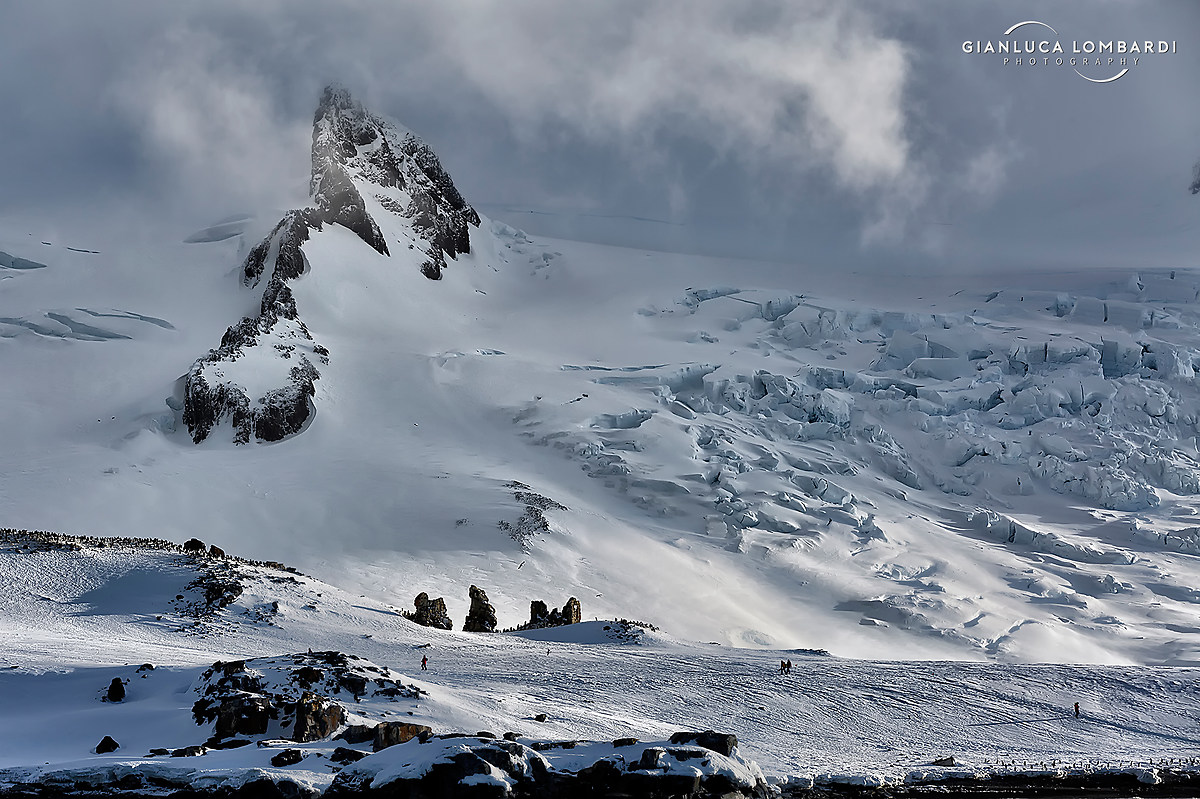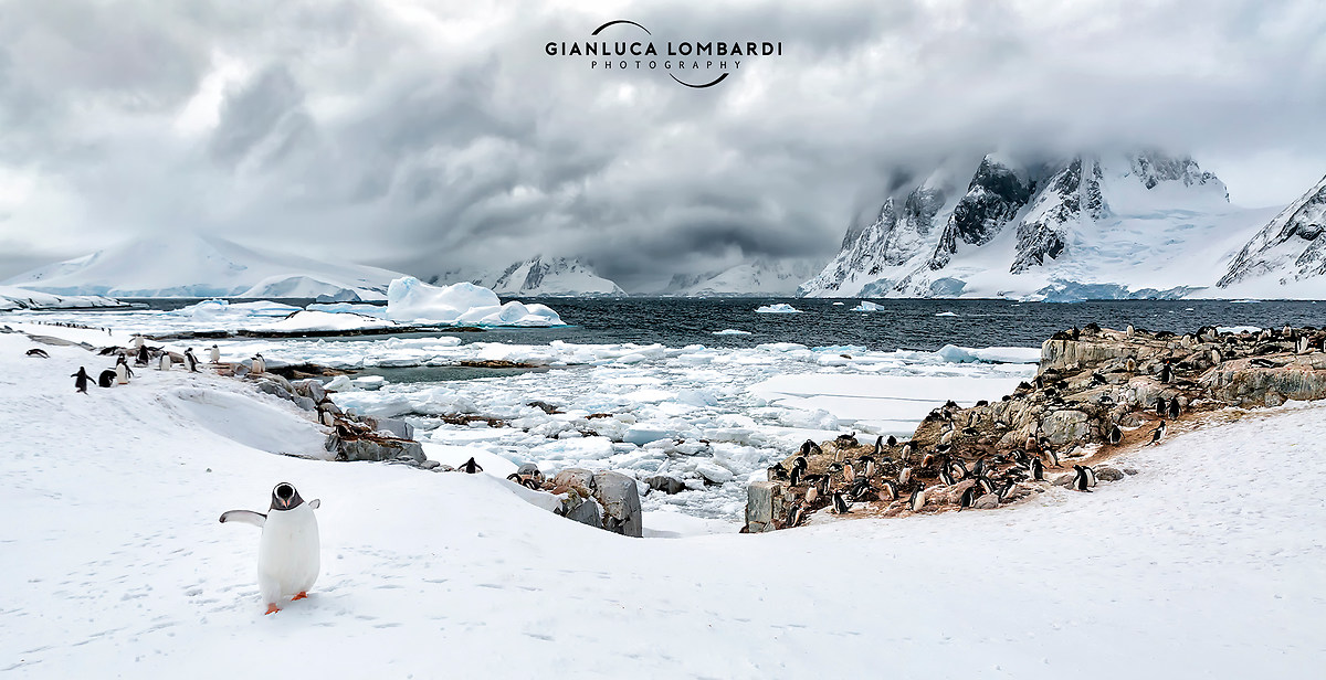 Una volta a terra ero circondato da migliaia di Pinguini Gentoo urlanti. La colonia era illuminata da una specie di luce divina, i raggi del Sole filtravano a picco dall'alto tra nubi che iniziavano ad addensarsi sempre di più.