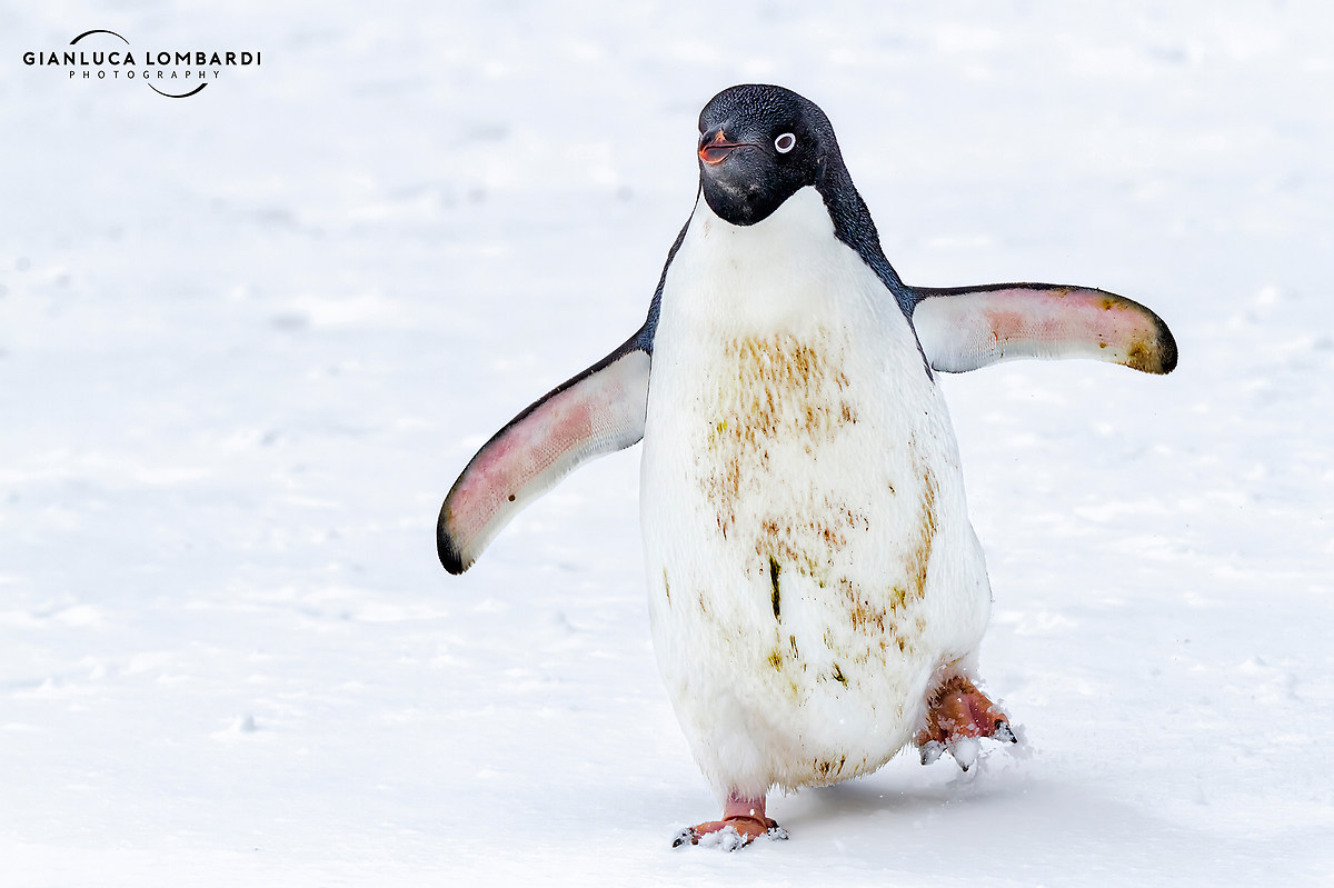 I pinguini sono tanto carini, ma puzzano da morire. Naturalmente defecano dove capita, e il guano si accumula, e loro ci sguazzano dentro. Si riesce a capire di essere vicini a colonie di pinguini dall'odore nauseante che c'è nell'aria. Il guano dei pinguini si congela sulla neve, ed è poi ricoperto dalle nevicate successive. Ed allora capita che tu che cerchi di fotografarli a distanza col tele, ti stendi sulla neve ignaro della sorpresa, e ti riporti sulla nave i vestiti belli farciti, e ti tocca ripulirli immediatamente, perché altrimenti l'aria all'interno della cabina diventa insopportabilmente pestilente. Ecco, ci tenevo a rimarcare questa cosa.