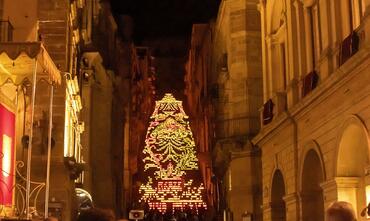 Periodo : Natale, estate in particolar modo 25 luglio festa di San Giacomo Santo Patrono con illuminazione con lumini colorati della grande scalinata, in particolare vengono realizzati dei disegni sulla scala con le luci molto suggestivi