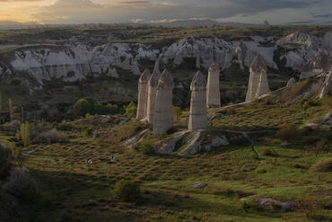 Soggetti : Formazioni rocciose di origine vulcanica levigate dal vento e dall'acqua nel corso di migliaia di anni, enormi cilindri di forma piramidale di roccia vulcanica o tufo con in cima un cappello formatosi nel tempo, il parco di Goreme è dal 1985 Patrimonio dell'Unesco. Città sotterranee scavate nella roccia profonde fino a otto livelli dove nel tempo hanno trovato rifugio i Cristiani, ora ovviamente disabitate ma visitabili con guide.