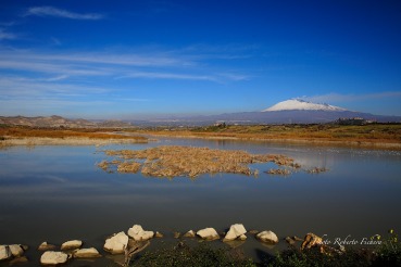 Soggetti : Avifauna: Nei periodi migratori, nelle pozze di acqua salmastra si incontrano piccoli uccelli come il combattente, la pettegola, il cavaliere d'Italia; nelle zone dei laghi Gornalunga e Salatelle si possono incontrare l'airone rosso, l'oca selvatica, la moretta tabaccata, la pavoncella, il piviere dorato. Durante il periodo invernale si vedono svernare migliaia di uccelli acquatici che trovano l'ambiente e il clima adatto, come le folaghe, i cormorani e gli aironi. Non è raro il veder volteggiare il falco di palude e il falco pescatore., Artropodi, Rettili, Piante, Panorama Etna.