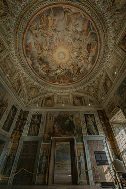 Soggetti : Architettura rinascimentale di interni ed esterni-Particolari architettonici di scale, pavimenti, stucchi, porte, finestre-Affreschi di vario genere alle pareti e ai soffitti con riprese degli interi locali o di particolari che attirano l'attenzione.Riprese all'esterno ai giardini (Orti Farnesiani) e all'intero complesso museale.