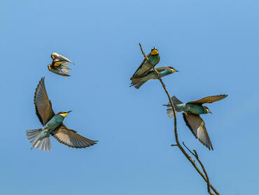 Soggetti : Oltre 140 specie di uccelli che si altrernano nei diversi periodi dell'anno (sul sito del parco si parla di oltre 200 specie segnalate, ma per molte si tratta solo di avvistamenti accidentali). Sempre presenti durante tutto l'anno picchio rosso maggiore, picchio verde e picchio nero, picchio muratore, rampichino, cinciallegra, cincia bigia e cinciarella, pettirosso, fringuello, cardellino, verdone, pispola, saltimpalo, scricciolo, regolo, codibugnolo e molti altri passeriformi comuni nella Pianura Padana piemontese e nelle limitrofe zone collinari. Sono stanziali e nidificanti anche la ghiandaia, la poiana, il gheppio, lo sparviere, l'allocco, il gufo comune e la civetta, il barbagianni, così come anche le più comuni gazze, cornacchie, tortore e storni. In inverno è possibile incontrare, tra gli altri, la cincia mora, numerosissime peppole, il migliarino di palude, lo zigolo muciatto, l'averla maggiore, il corvo imperiale, l'albanella reale, il picchio rosso minore e molte altre specie svernanti più o meno comuni. In estate ci troviamo nel sito di nidificazione più nord-occidentale d'Italia per il gruccione (presenti più siti di nidificazione con numerosi individui che nelle annate migliori superano le parecchie decine di esemplari). Nelle stesse aree di nidificazione del gruccione, da maggio in poi, è possibile osservare l'upupa e, se si è molto fortunati, la ghiandaia marina. Sempre in estate fanno il loro arrivo il rigogolo (difficile da vedere, ma facilissimo da sentire per il suo tipico richiamo che echeggia nei boschi), il cuculo, la capinera, il prispolone, l'usignolo, il canapino, l'albanella minore, il nibbio bruno, l'averla piccola, l'ortolano, lo strillozzo e molte altre specie che in estate scelgono questi luoghi per nidificare. Durante i periodi di migrazione primaverile e autunnale e poi possibile osservare numerose altre specie tra cui il nibbio reale, il falco di palude, il tordo sasello, il tordo bottaccio, la cesena, e altri migratori che spesso scelgono questa zona per una sosta durante il lungo volo che li porterà ai luoghi di svernamento o di nidificazione.Non solo avifauna, però. La Vauda è una zona in cui è possibile incontrare anche molti mammiferi. Le volpi sono sempre state molto comuni, così come anche il tasso e la faina (difficili da vedere perchè con abitudini notturne, ma ben radicati nella zona). Numerosi i caprioli e i cinghiali e il loro sempre più crescente numero sembra che abbia attratto fin qui anche il lupo, del quale, negli ultimi 3-4 anni, hanno iniziato a registrarsi varie segnalazioni di individui solitari. Nelle zone più occidentali, più vicine ai primi rilievi alpini, è stato segnalato anche qualche cervo. Nei boschi, sono abbastanza comuni anche lo scoiattolo rosso e il ghiro (qui, nonostante la vicinanza con Torino, il dannoso scoiattolo grigio americano non è stato ancoa segnalato), mentre lungo i corsi d'acqua non è raro incontrare, purtroppo, le sempre più numerose nutrie. Una volta erano presenti anche molte lepri, ma a partire dagli anni '70 del secolo scorso, l'introduzione a scopo venatorio delle minilepri (una specie molto prolifica di origine, se non erro, est-europea) ne ha causato la decimazione e oggi, in un'area di oltre 3200 ettari di riserva, è possibile contarne solo pochi e sempre più rari individui. Una particolarità della zona che ricade nell'area in cui fin dal 1800 sorgeva un poligono di tiro dell'esercito sabaudo prima e dell'esercito italiano poi, è la presenza di numerosissime buche scavate dalle esplosioni dei pezzi di artiglieria che qui venivano ad essere provati. Le buche più grandi rimangono piene d'acqua per tutto l'anno e permettono la sopravvivenza di numerosi anfibi, tra cui il sempre più raro tritone. Purtroppo il clima degli ultimi anni, che ha visto estati molto secche, ha causato il prosciugamento di molte pozze che fino a pochi anni fa erano allagate 365 giorni l'anno... Sembra che comunque, in qualche pozza più grande e profonda e meno esposta all'inclemenza del sole estivo, qualche colonia di tritone resista ancora. Nei boschi, invece, nei periodi molto umidi, non è difficile incontrare le salamandre pezzate.Anche per gli amanti delle macro, le possibilità non mancano: dalla primavera all'autunno, è possibile osservare numerosissime specie di insetti (comprese moltissime specie di farfalle), alcuni anche rari, come ad esempio il Copris lunaris, uno stercorario molto raro.Infine qualche accenno alla flora. La Riserva delle Vaude è formata da diversi tipi di ambienti: quello più caratteristico è la brughiera, con dominanza di calluna (un'erica) e di varie graminacee, alternata a piccole macchie in cui le betulle sono l'elemento più tipico. Nelle zone più umide e nelle vallette scavate dai piccoli corsi d'acqua che la percorrono, l'ambiente prevalente è quello del bosco, in cui dominano soprattutto querce e carpini, ma in cui non mancano altre essenze tipiche delle antiche foreste di pianura come il frassino e il pioppo nero. Nelle zone periferiche della riserva sono molto comuni aree adibite a pascolo in cui, almeno fino a pochi anni fa, non avveniva lo sfalcio e in cui era possibile la nidificazione di allodole e quaglie (oggi queste due specie sono quasi scomparse a causa dello sfruttamento intensivo che fino a solo un decennio fa non era quello di oggi).