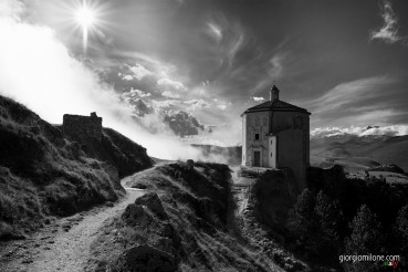 Soggetti : Rocca Calascio è una rocca medievale sita nel comune di Calascio (AQ) all'interno del parco nazionale del Gran Sasso e Monti della Laga, con i suoi 1460 metri di altitudine(uno dei castelli più alti d'Italia) domina la valle del Tirino e l'altopiano di Navelli.Il soggetto principale è dunque il castello, la chiesa di S.maria della Pietà e l'antico borgo ai piedi della rocca.