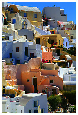 Soggetti : Paesaggi, paesaggi e poi paesaggi! Gli splendidi tramonti sono uno dei motivi principali per cui i turisti visitano Santorini, si possono fotografare da tantissimi belvederi in giro per l'isola. Fantastici poi i panorami "acquatici" dei quali si puo' godere dalla cima di Fira, capoluogo dell'isola, ed altrettanto suggestivi quelli notturni, sia a Fira che a Oia. In giro per l'isola c'è anche un pò di "natura", ma niente animali. Non mancate le caratteristiche spiagge: la nera e la rossa, suggestive.Si fa anche un pò di street nelle caotiche vie, molto rustiche e folkloristiche.