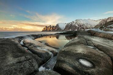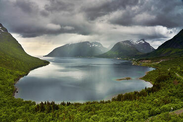 Soggetti : Come le molto più famose Lofoten Senja (che è un'unica grande isola più a nord delle sorelline) offre lo spettacolo dei fiordi che si lanciano nel mare con la particolarità di un paesaggio molto più selvaggio, desolato e di per se' suggestivo.