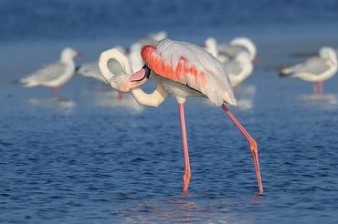 Note : Il comune principale è Cabras, il cui territorio ricade interamente nel Sinis ma sono interesati anche i comuni di Nurachi, Riola e San Vero Milis. Area umida inserita tra quelle protette dalla convenzione di Ramsar. Nonostante l'avifauna sia eccezionalmente abbondante ed abbastanza confidente, per una buona fotografia è opportuno dotarsi del necessario per realizzare appostamenti. Tra le varie feste merita una menzione particolare la corsa degli scalzi, la prima domenica di settembre. Testimonianze archeologiche dalla prestoria all'alto medioevo. Tra le specialità enogastronomiche da segnalare la bottarga di muggine di Cabras e la vernaccia di Oristano.