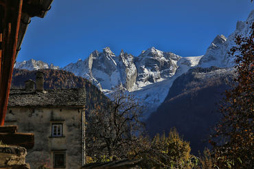 Soggetti : Panorami, Architettura, ambiente, castagnetiIl paese di Soglio è su un terrazzo a 1'090 metri d'altitudine e illuminato dal sole tutto l'anno, Soglio gode di un panorama mozzafiato che spazia dalla valle sottostante fino alle maestose cime del gruppo Sciora che si ergono dall'altro lato. Il paese ha un labirinto di strette stradine acciottolate che circondano antiche case e stalle addossate le une alle altre molto interessanti dal punto di vista fotografico.